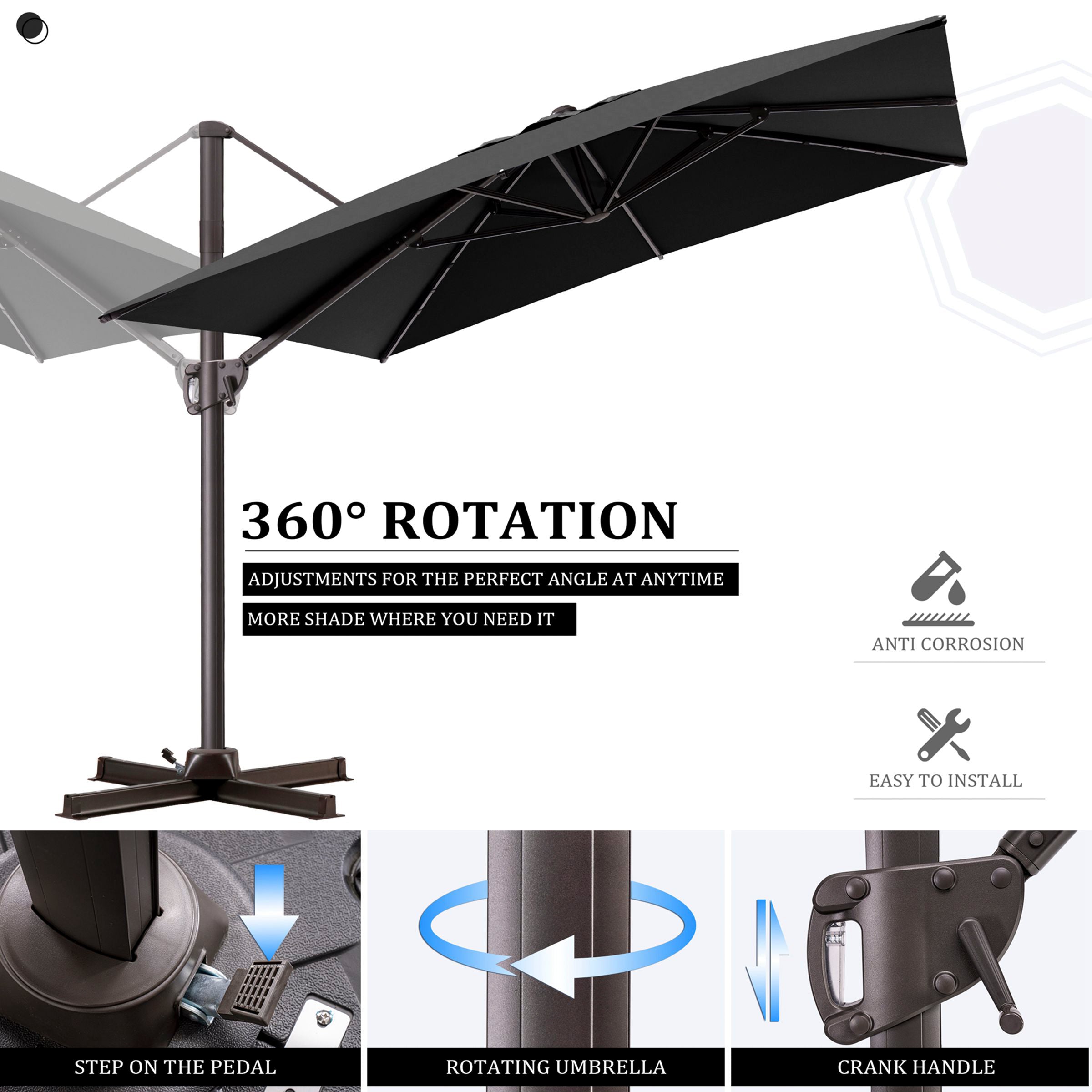 Strong & Stable Frame: Built with a rust-resistant powder-coated metal frame, this cantilever umbrella provides exceptional strength and stability, delivering long-lasting performance that surpasses most models on the market.