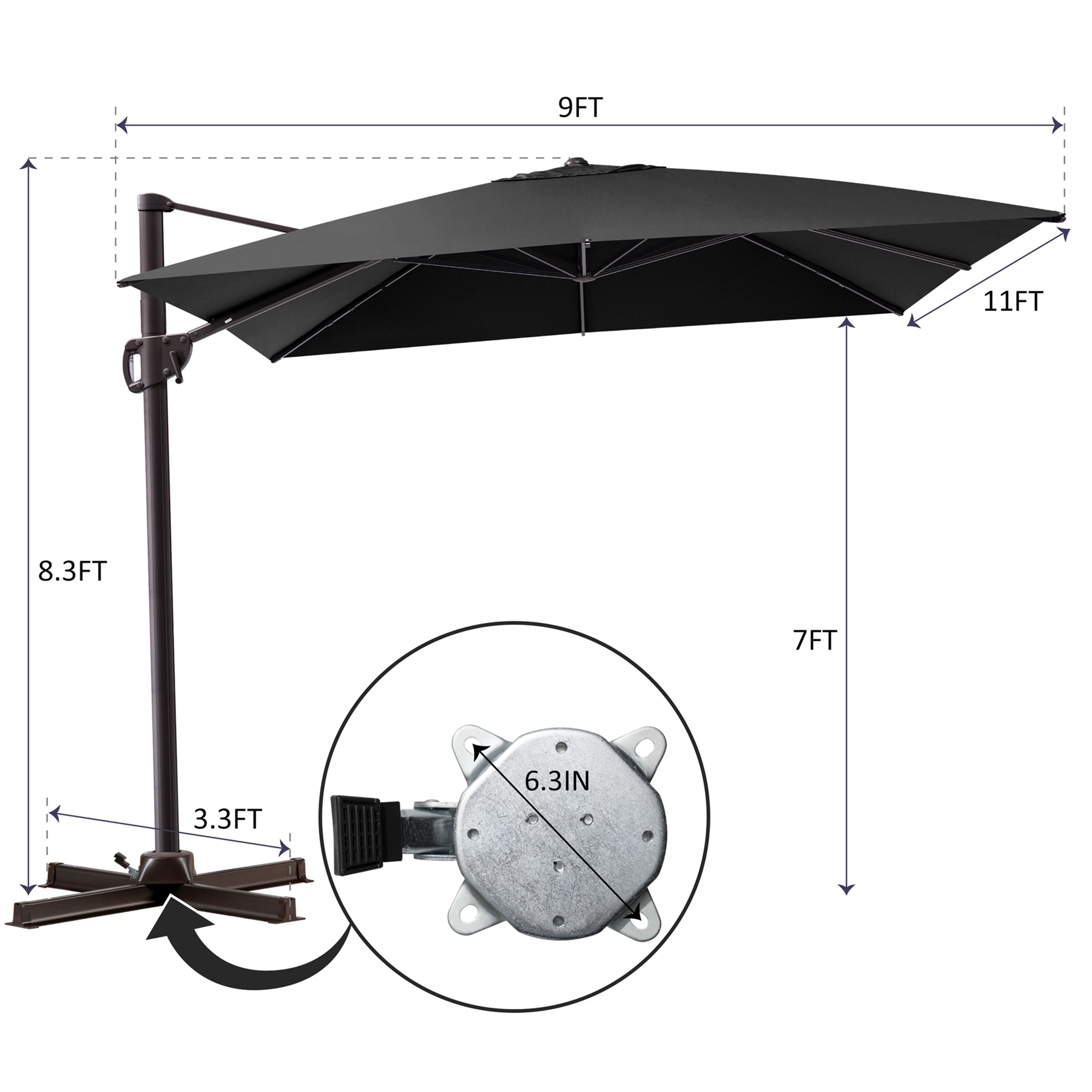Ample Shade Coverage: The 9 x 11 ft canopy offers a wider shade area than traditional patio umbrellas, making it perfect for patios, gardens, decks, poolside lounges, and backyard gatherings. Enjoy relaxing outdoor moments even on the sunniest days. Note: Base (weighted base in the picture) not included.