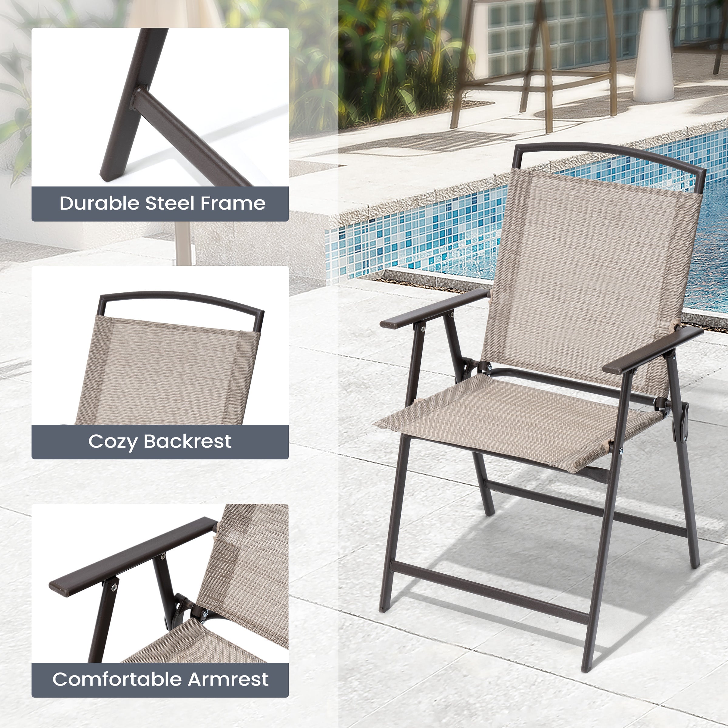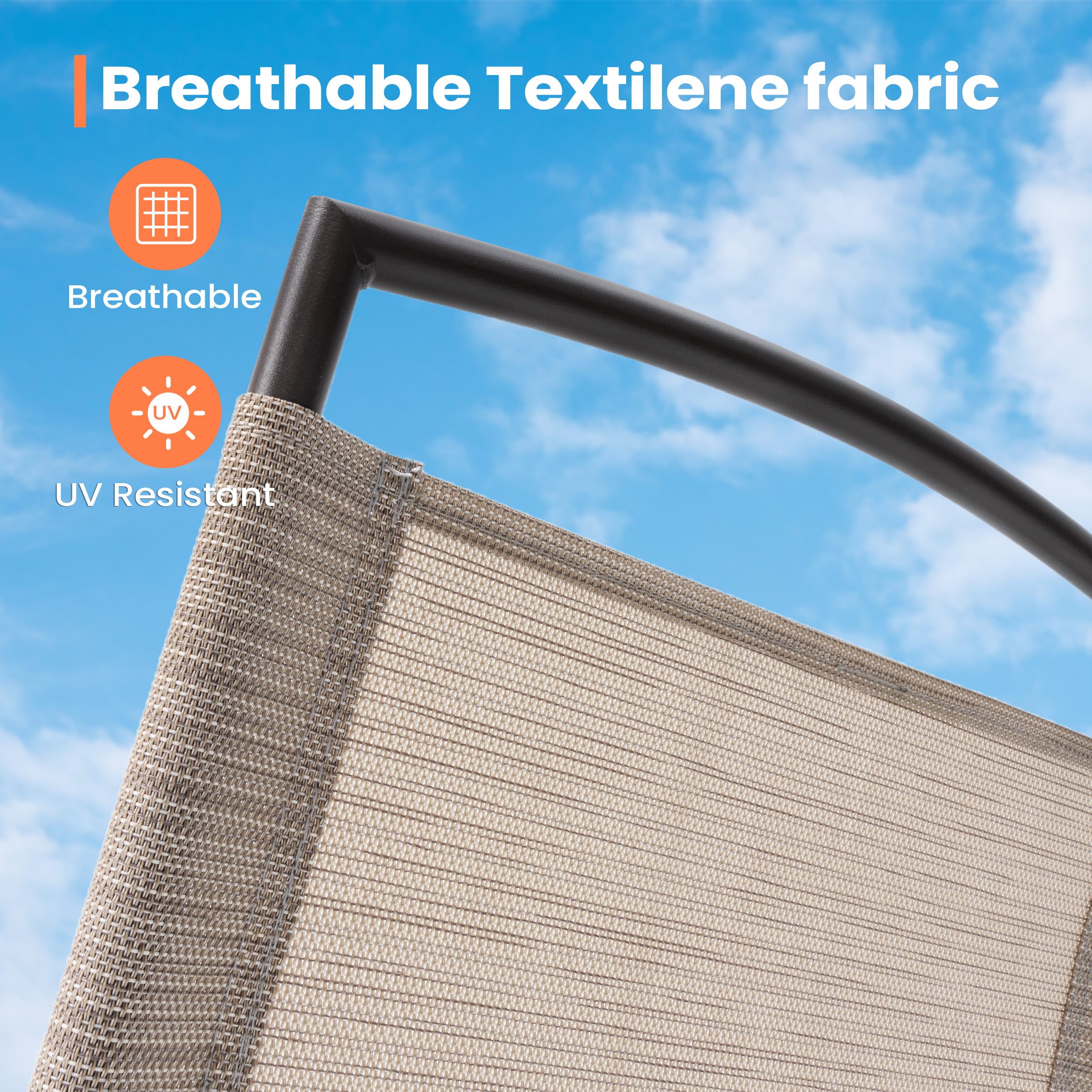 Durable & Comfortable Chairs: Crafted with UV-resistant, breathable fabric that's waterproof, oil-proof, quick-drying, and easy to clean. Each chair features a rust-resistant steel frame that provides sturdy support and holds up to 260 lbs for long-lasting comfort and stability.