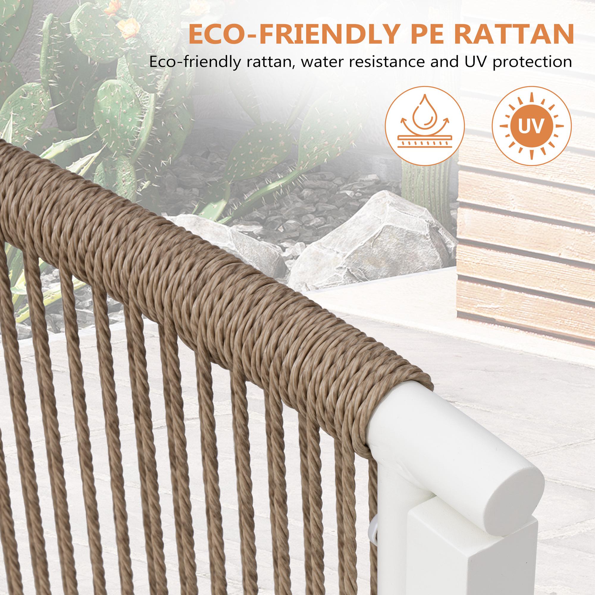 Premium PE Wicker: Crafted with thickened, hand-woven polyethylene rattan enhanced by UV stabilization technology, this wicker is resistant to cracking, fading, and deformation while maintaining a natural rattan texture. Water-resistant and easy to clean—just rinse with water.