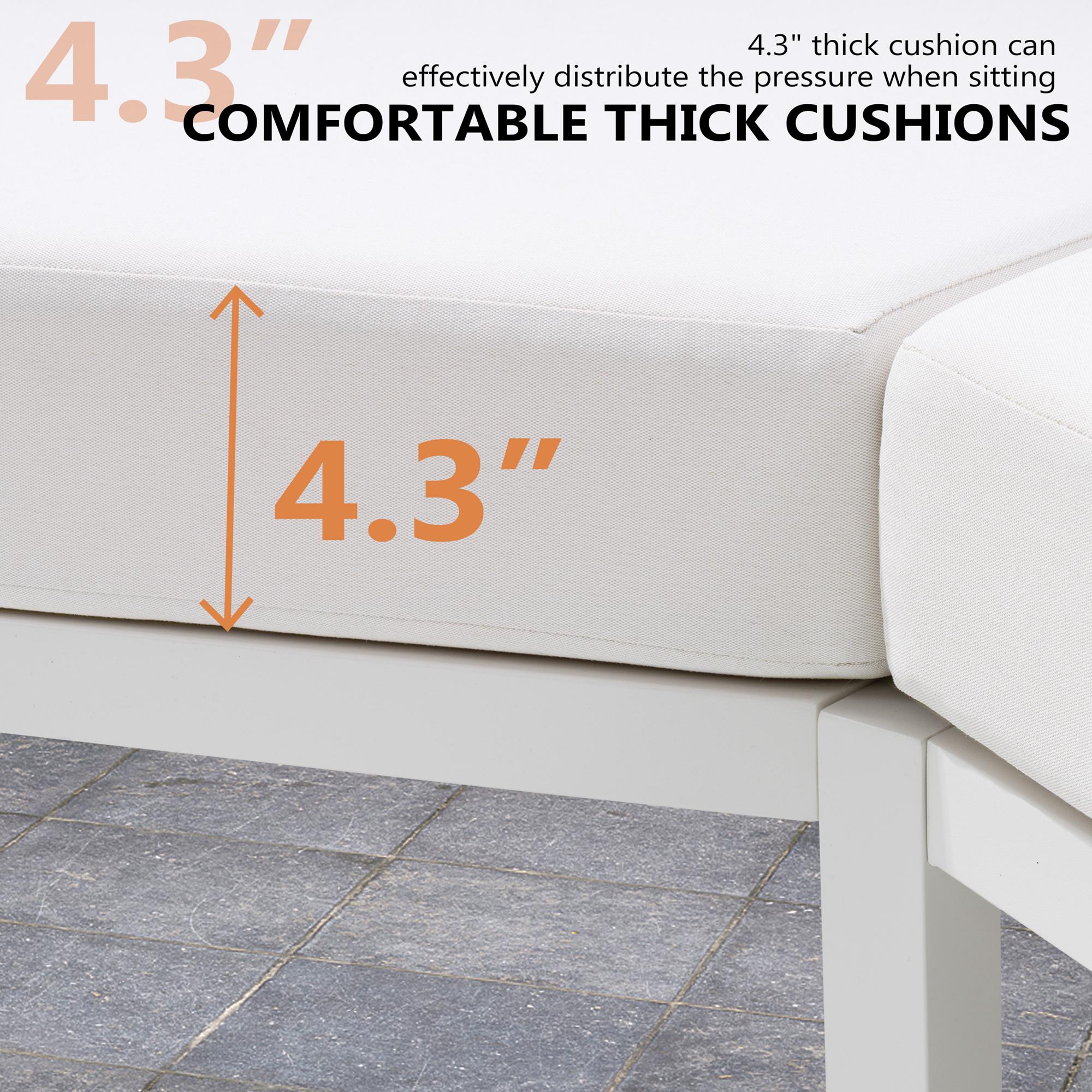 Comfortable Cushions: 4.3" thick high-density foam cushions deliver plush comfort and firm support, reducing fatigue during long lounging sessions. The removable, easy-to-clean covers ensure effortless maintenance.