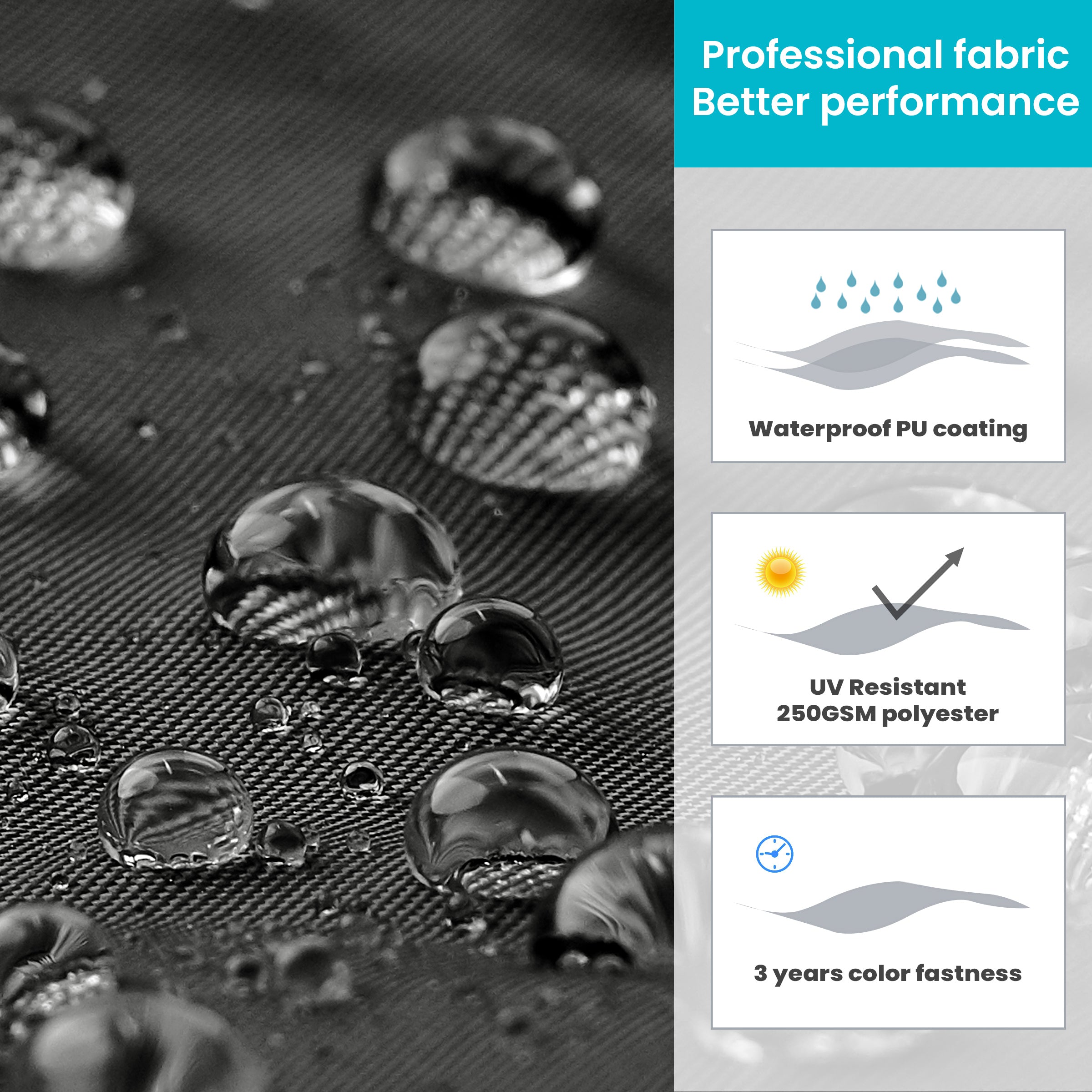 Premium 250g Polyester Fabric: Made from high-density 250g polyester fabric that resists fading, blocks UV rays, repels light rain, and maintains its rich color and soft texture through every season.