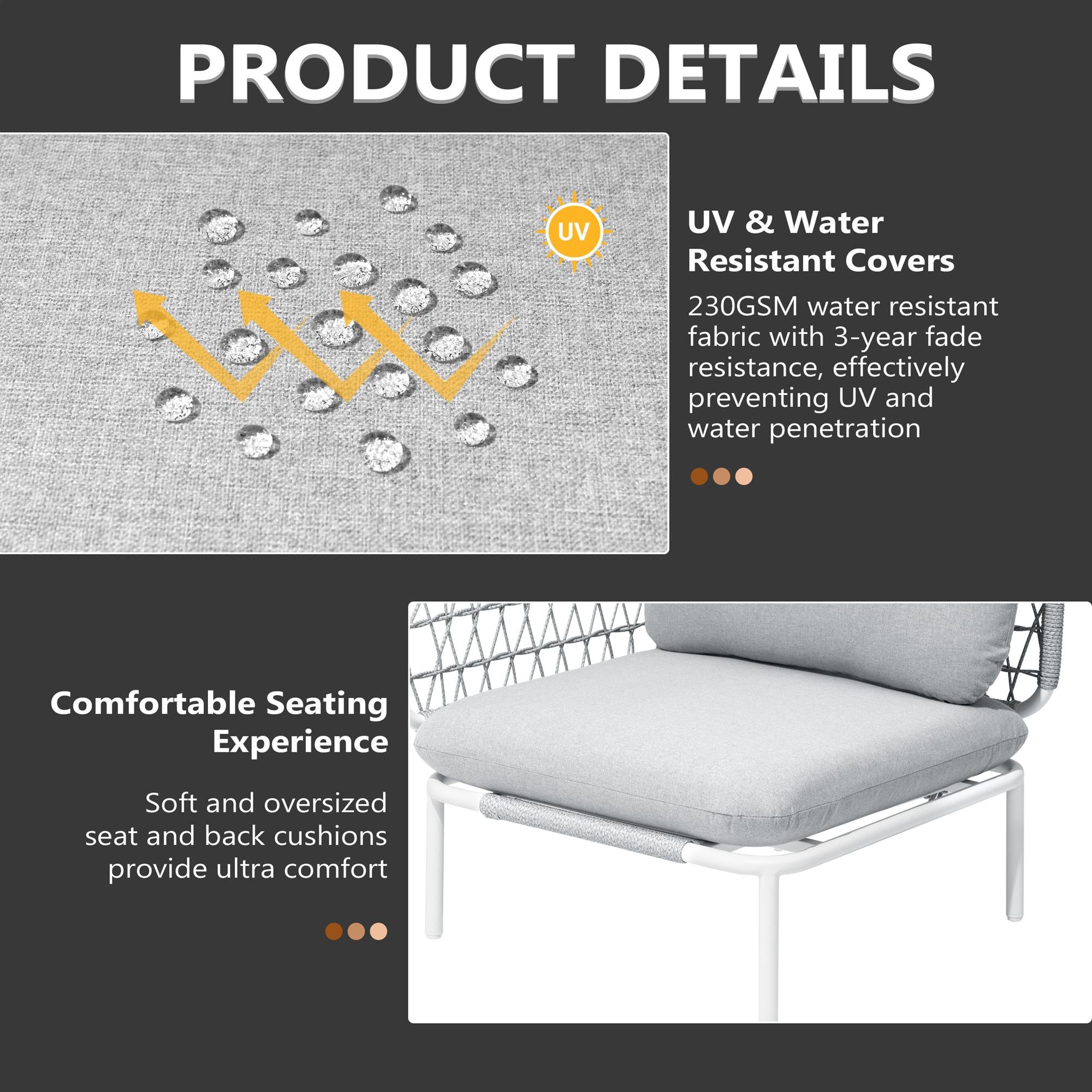 Flexible Combination: Each modular sofa piece works independently, allowing you to arrange or rearrange your setup to suit any space or occasion. Effortlessly create a cozy corner, an open lounge, or a spacious seating area that complements your outdoor lifestyle.