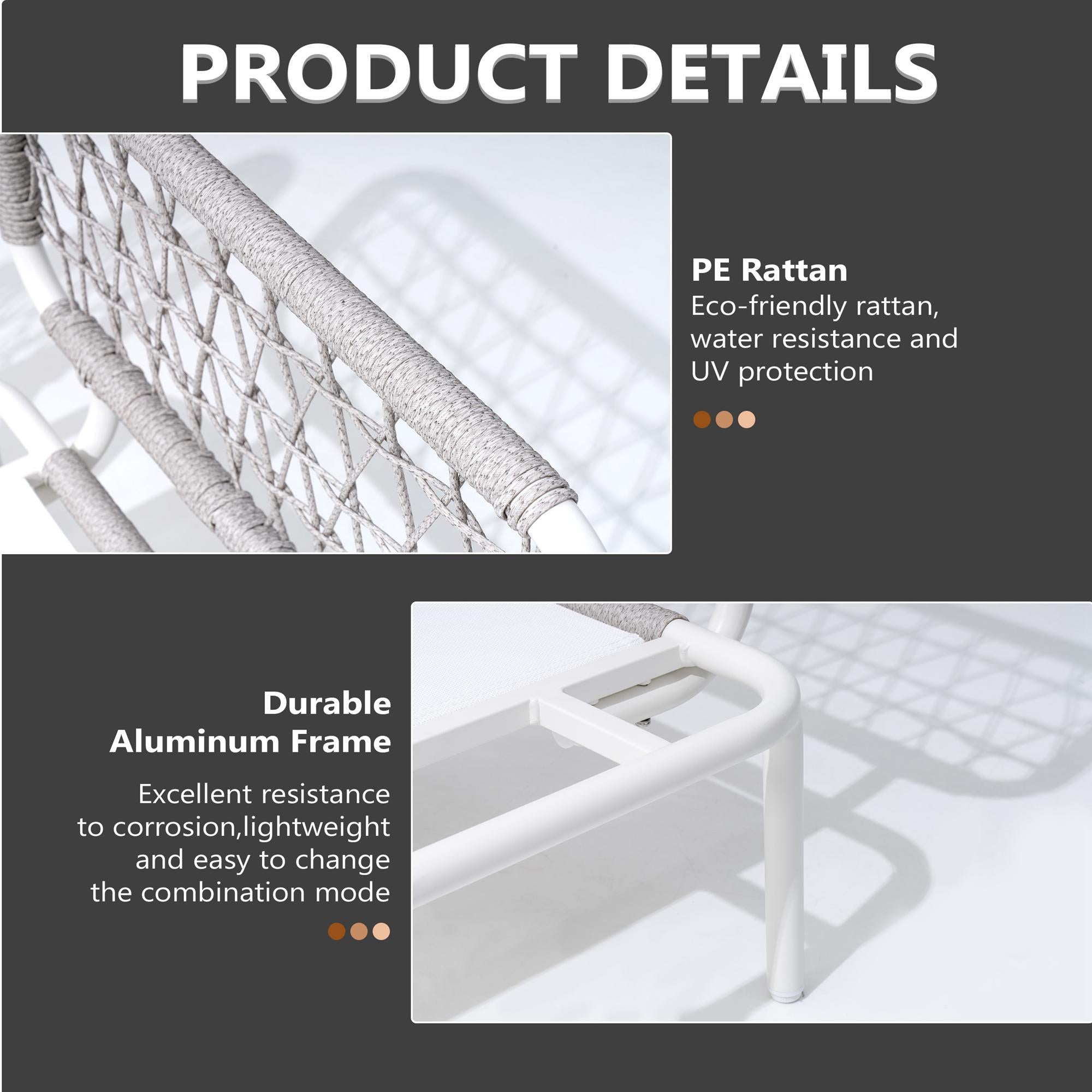 Eco-Friendly PE Rattan: Expertly handwoven from premium, eco-friendly PE rattan, this set adds a refined, natural aesthetic to your outdoor area. The weatherproof material resists fading, moisture, and dust, ensuring low maintenance and long-lasting beauty season after season.