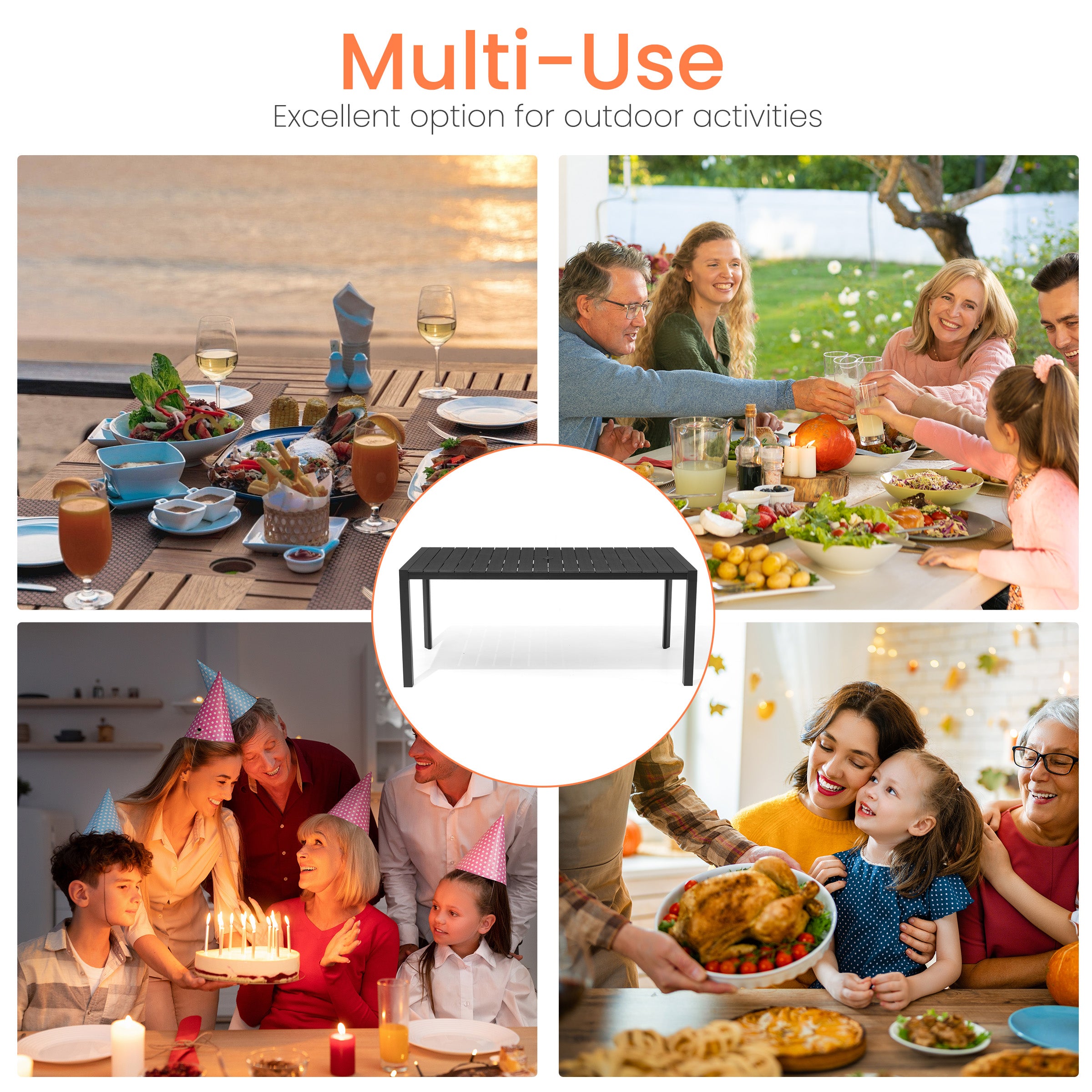 Convenient Umbrella Hole: Designed with a standard 1.63-inch umbrella hole in the center, allowing you to easily add shade for a more comfortable dining experience on sunny days.