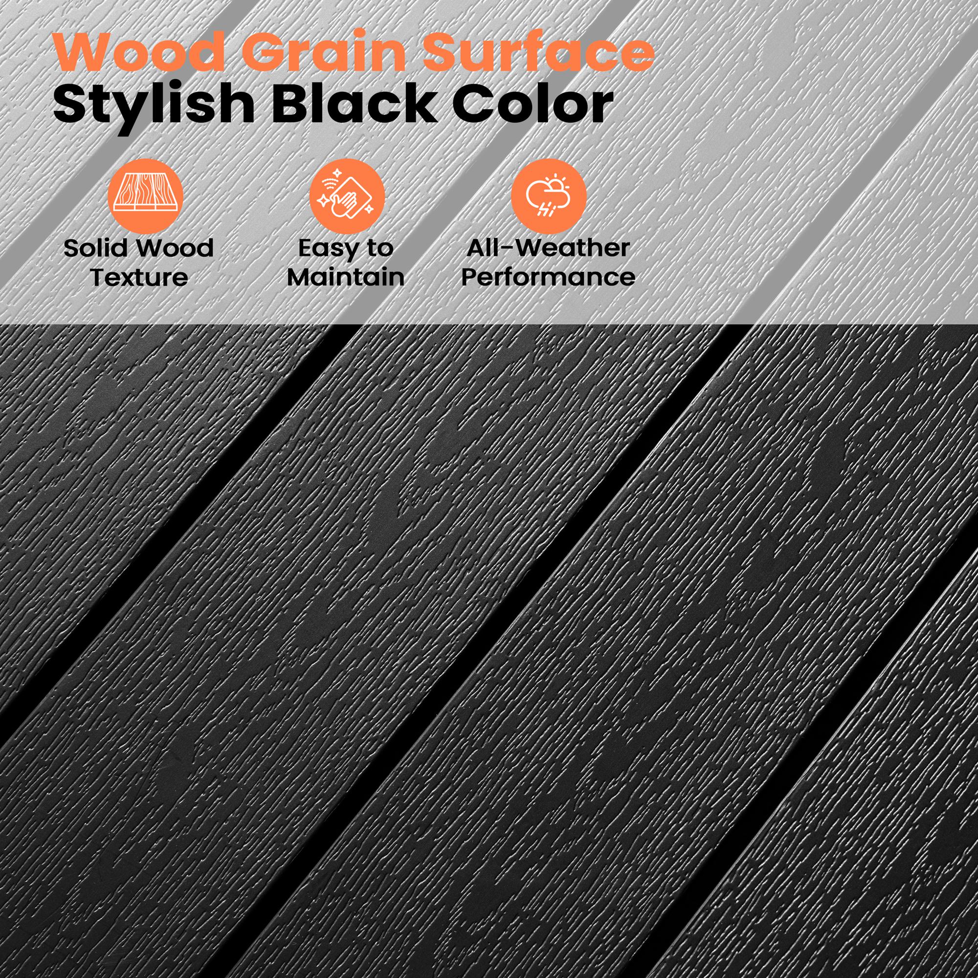 Eco-Friendly Plastic Wood Top: Crafted from premium plastic wood that mimics the natural texture of real wood, it's waterproof, moisture-proof, and insect-resistant. It won't crack or warp, offering year-round durability in any weather.