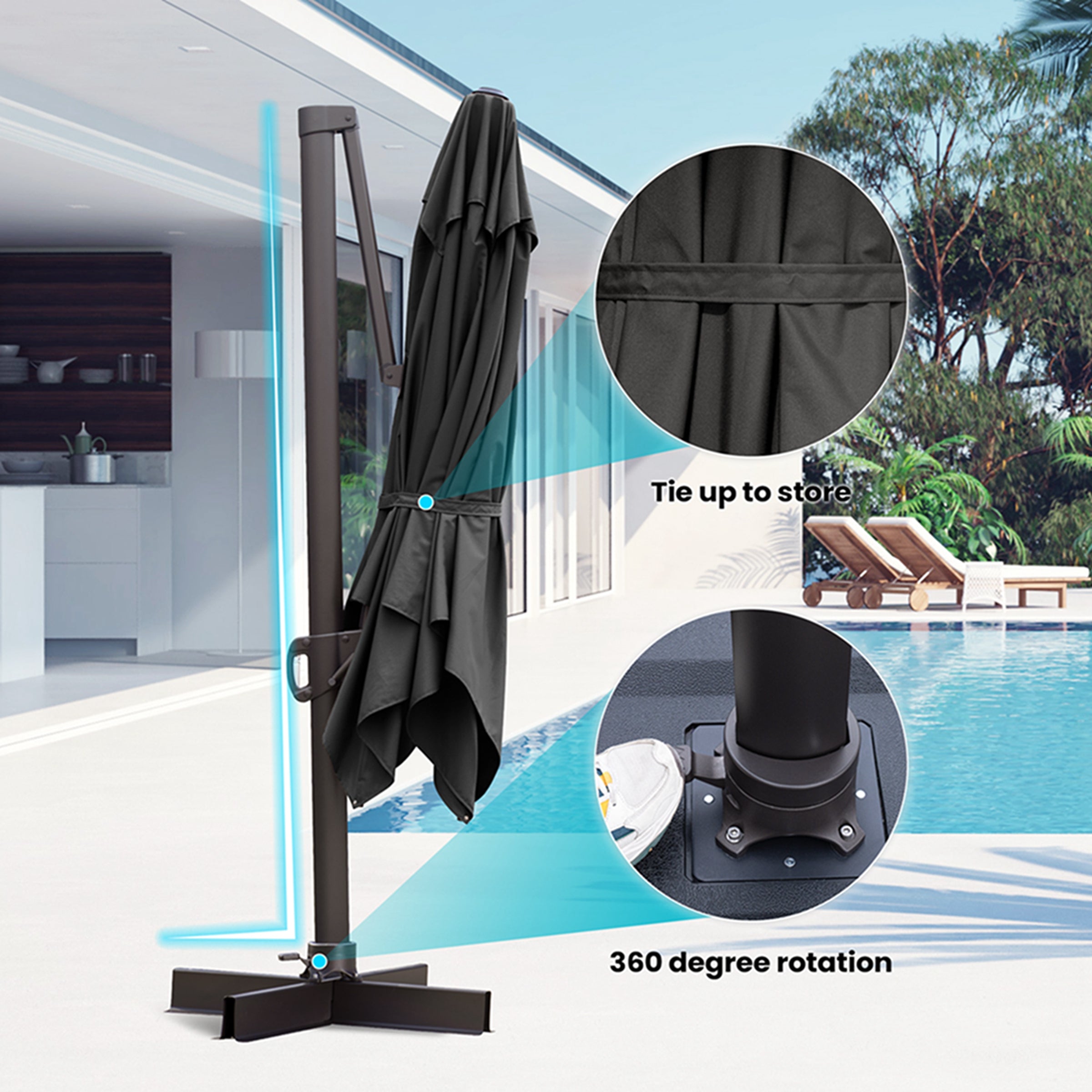 Strong & Stable Frame: Built with a rust-resistant powder-coated metal frame, this cantilever umbrella provides exceptional strength and stability, delivering long-lasting performance that surpasses most models on the market.