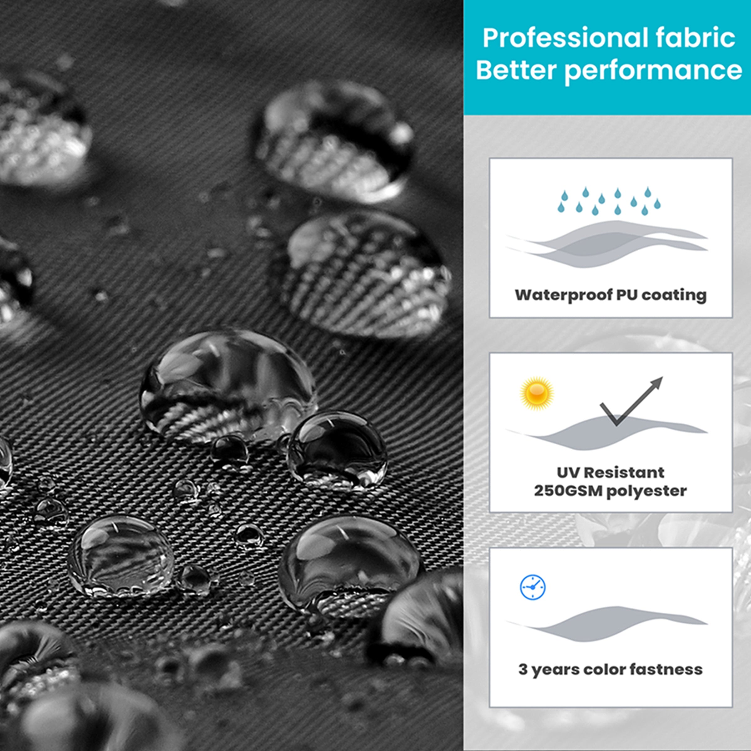 Premium 250G Solution-Dyed Fabric: Crafted from 100% 250gsm solution-dyed polyester, the canopy offers excellent UV protection, water resistance, and breathability, maintaining vibrant color for up to 500 hours of sun exposure without fading.