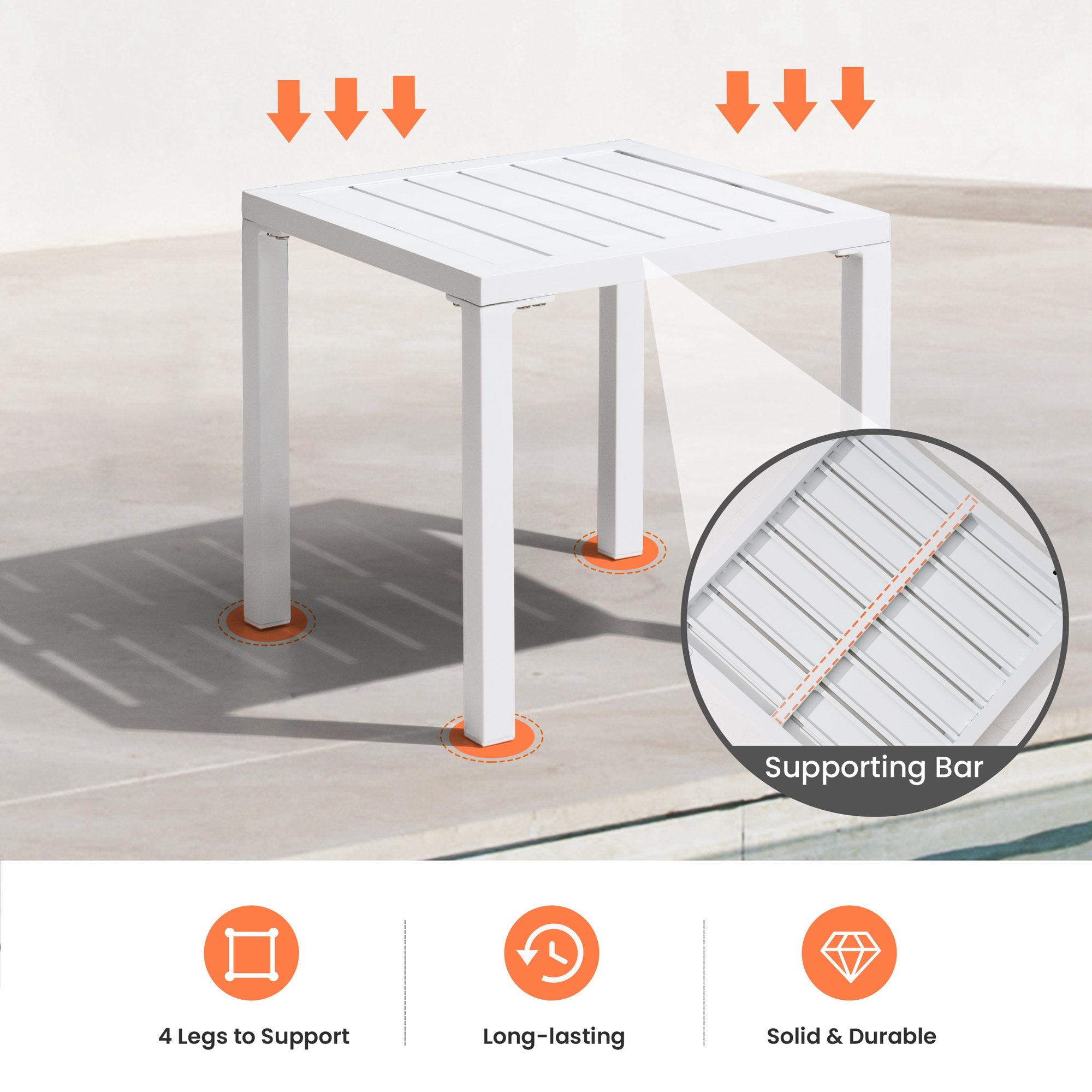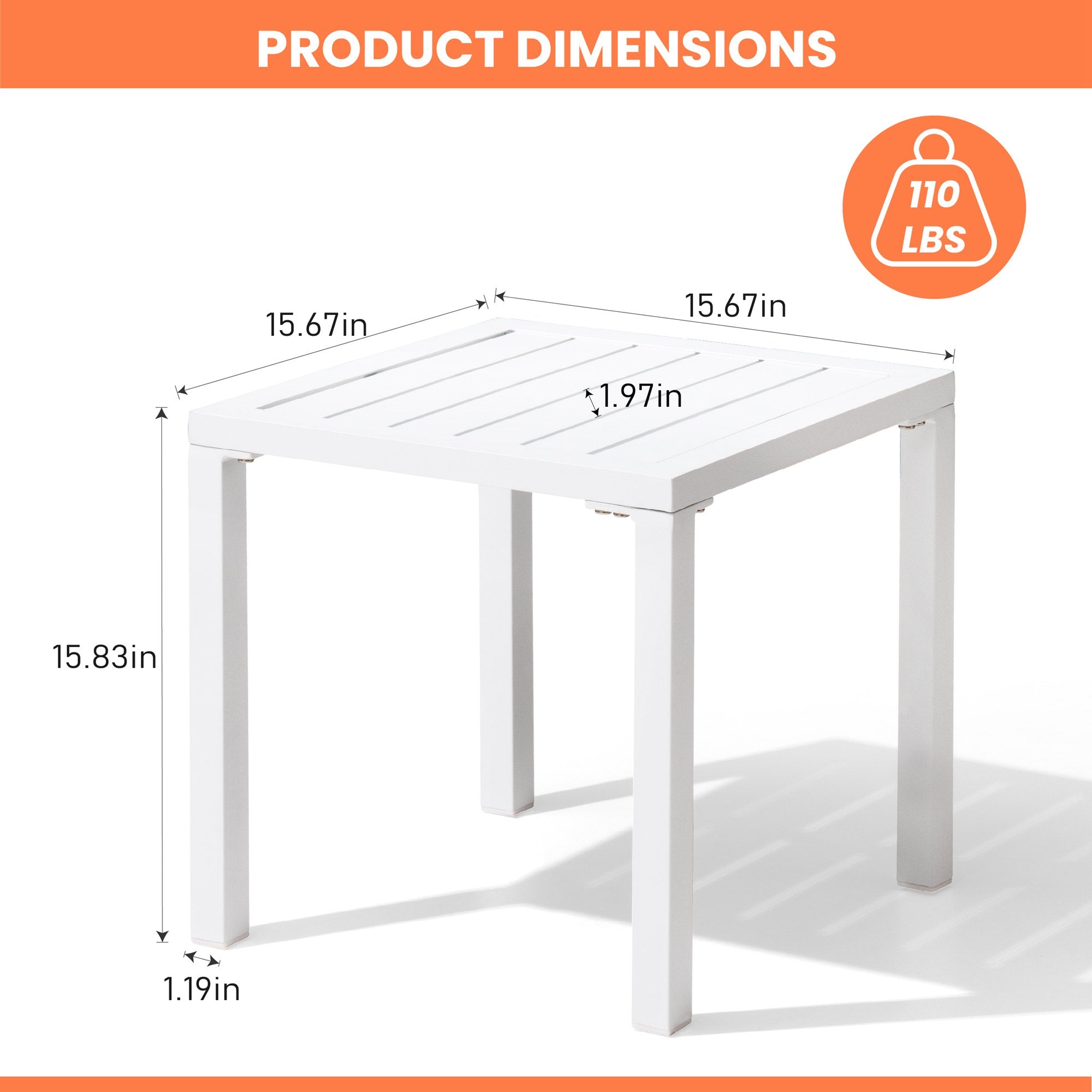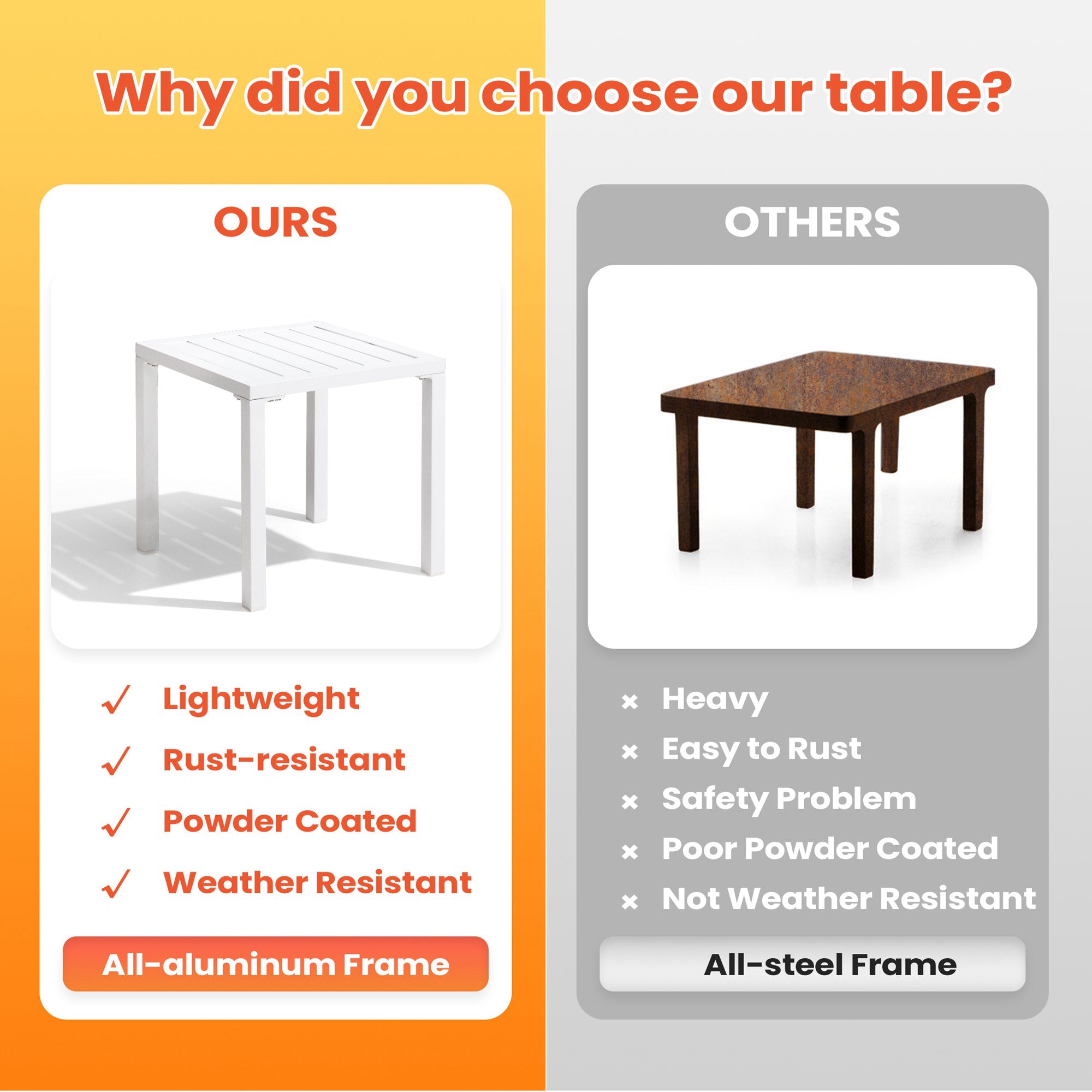 Classic and Timeless Design: Featuring a sleek aluminum frame with a powder-coated finish and an easy-to-clean tabletop, this side table brings both style and practicality to any setting. It complements your lawn, garden, balcony, porch, deck, or pool area beautifully.