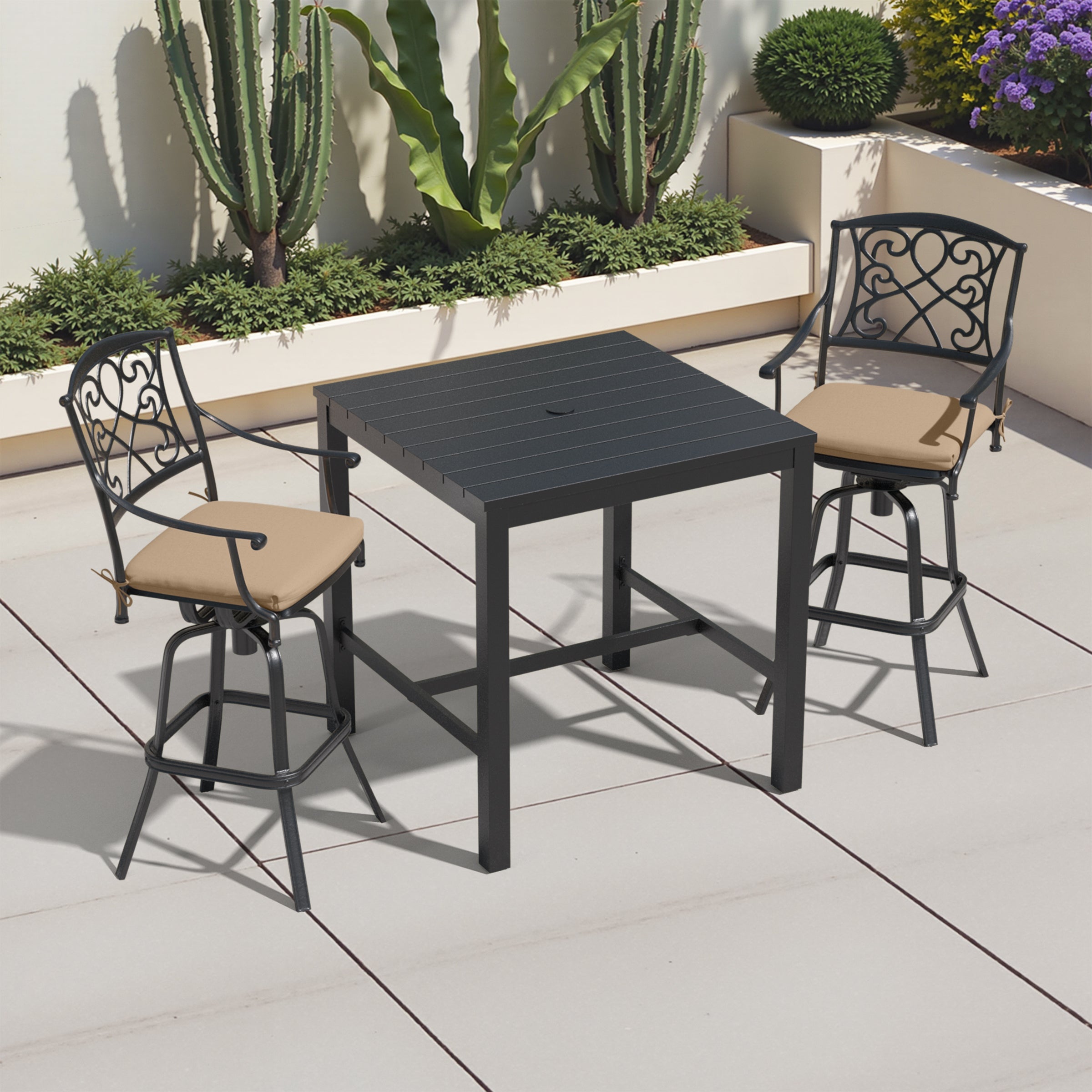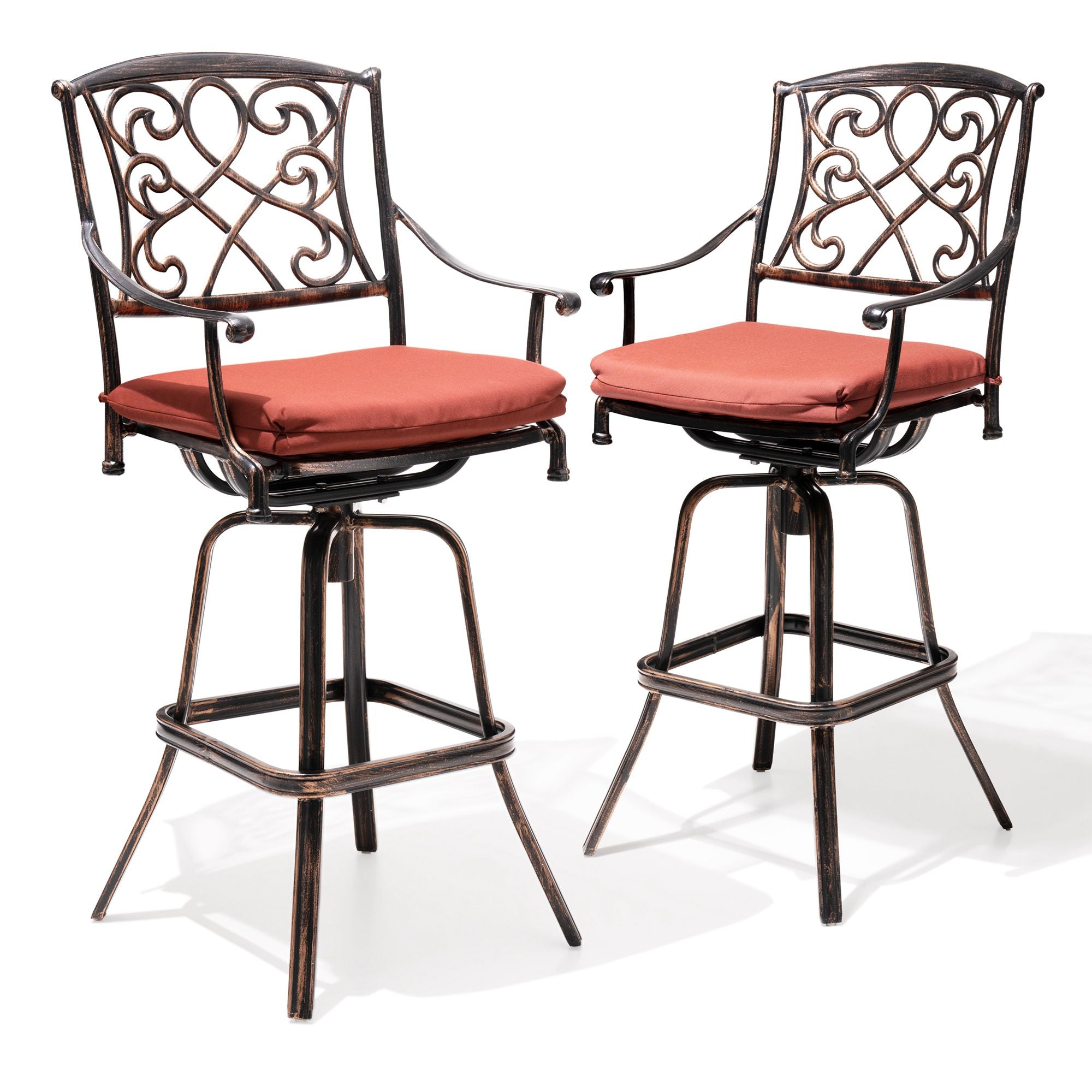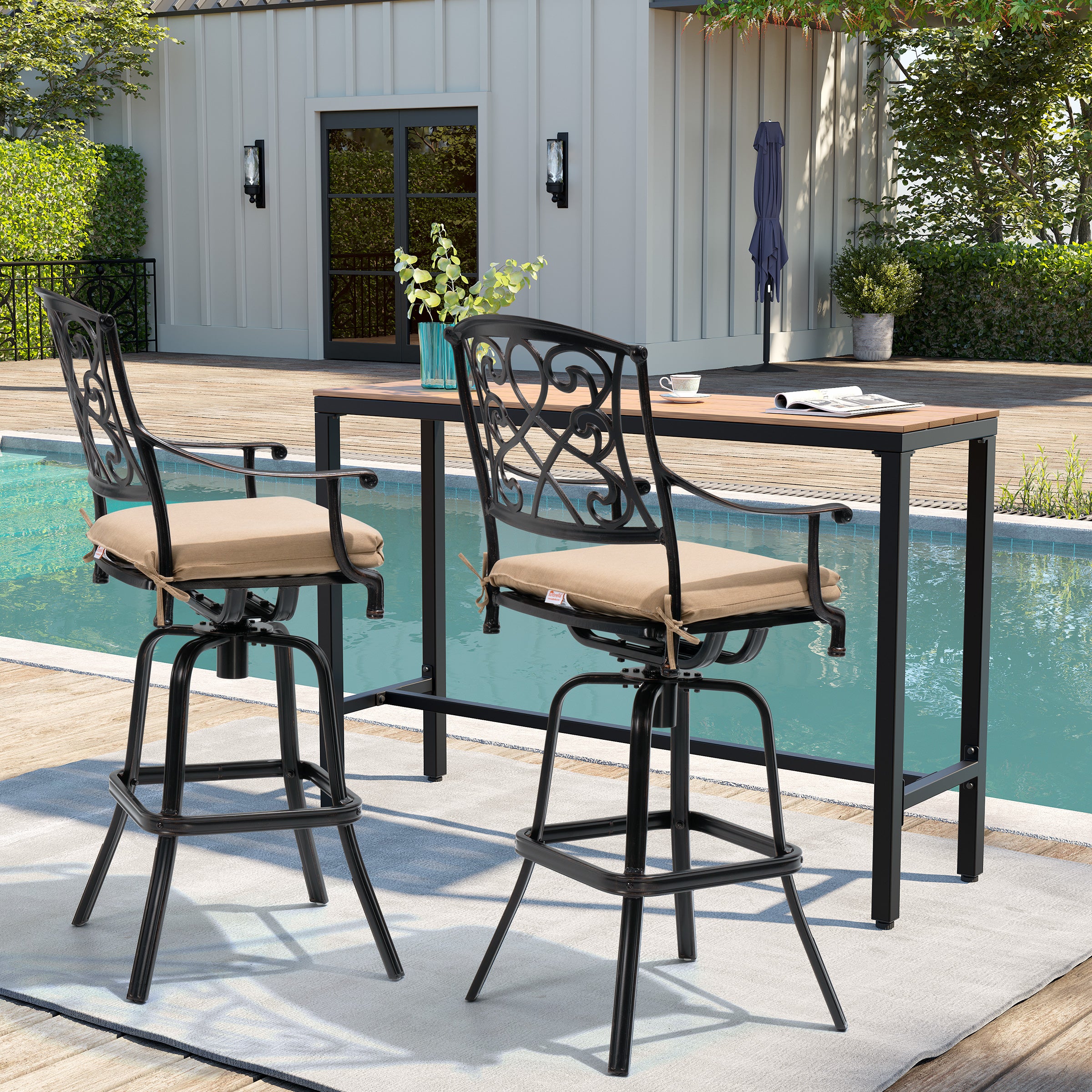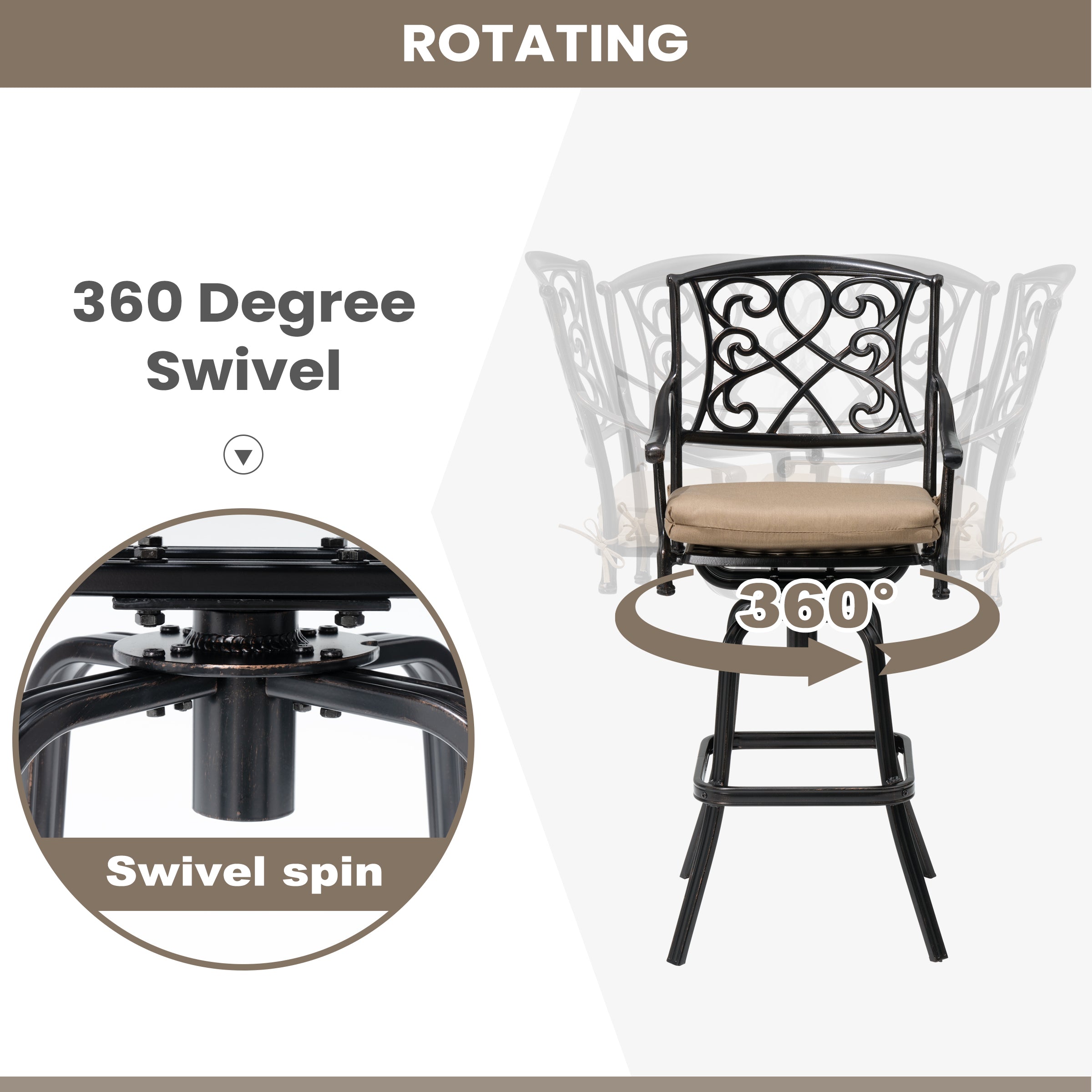 Sturdy & Stylish Cast Aluminum Frame: Built from rustproof, powder-coated cast aluminum that's both lightweight and exceptionally durable. Each stool supports up to 330 lbs for solid stability, while the elegant hollow-carved design enhances your outdoor decor.