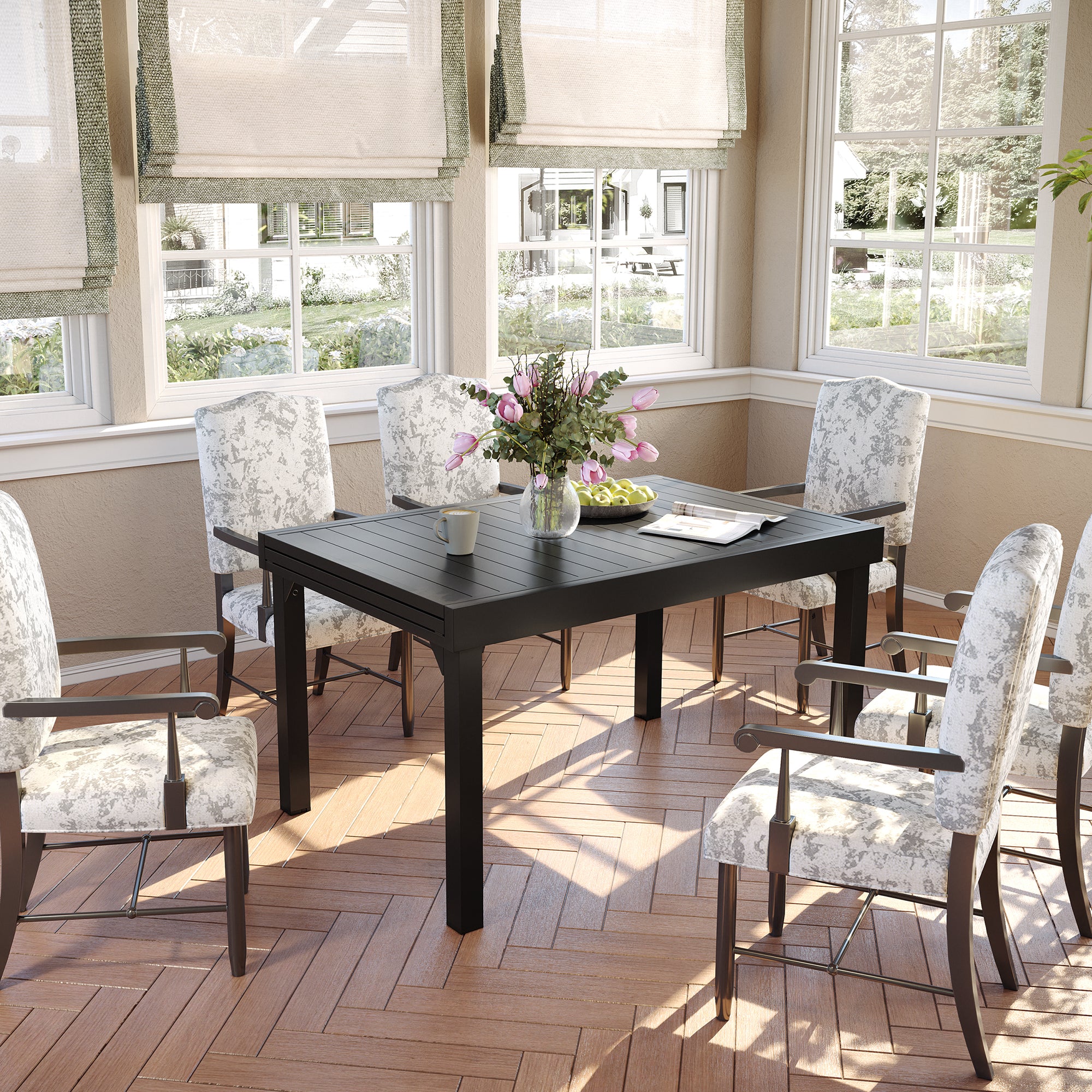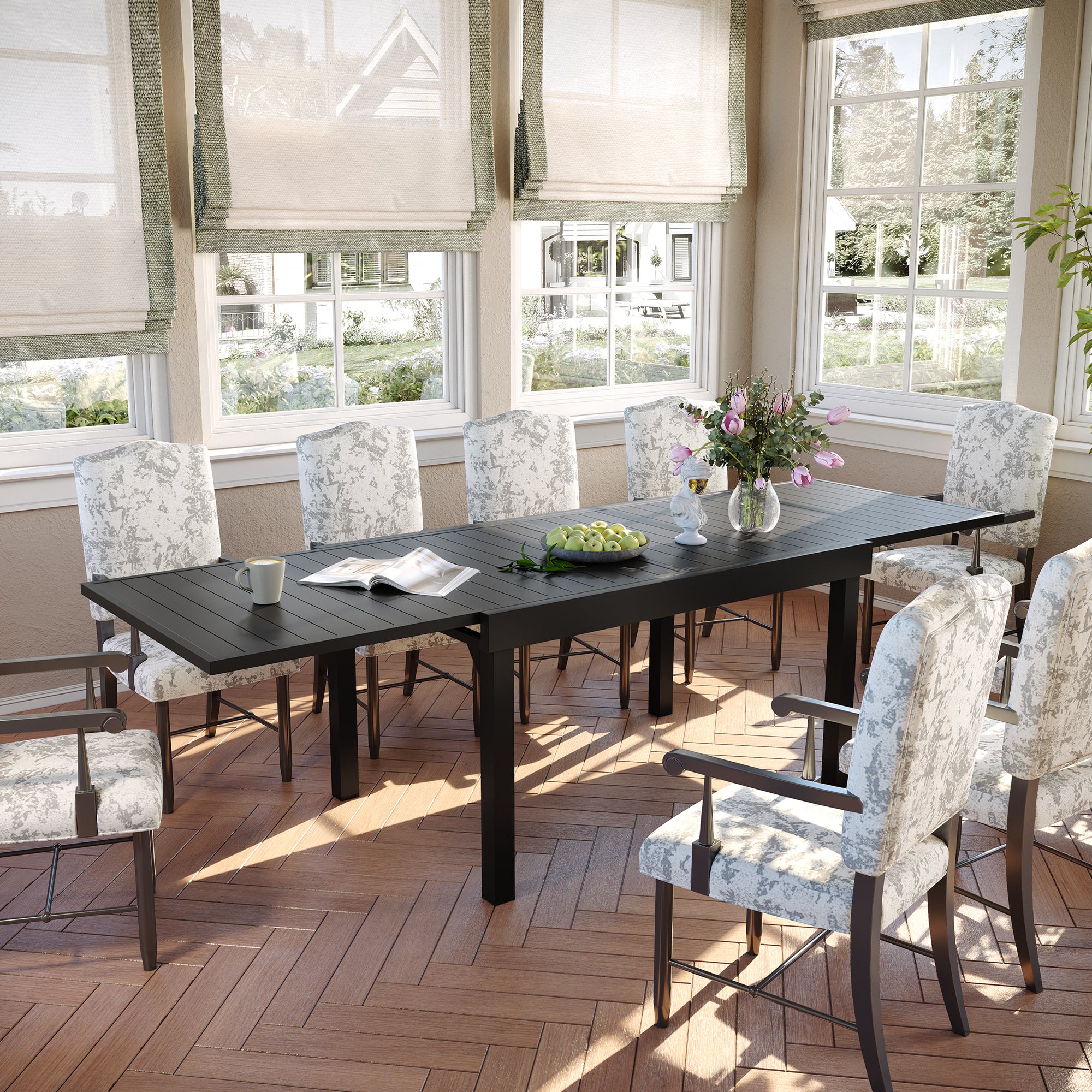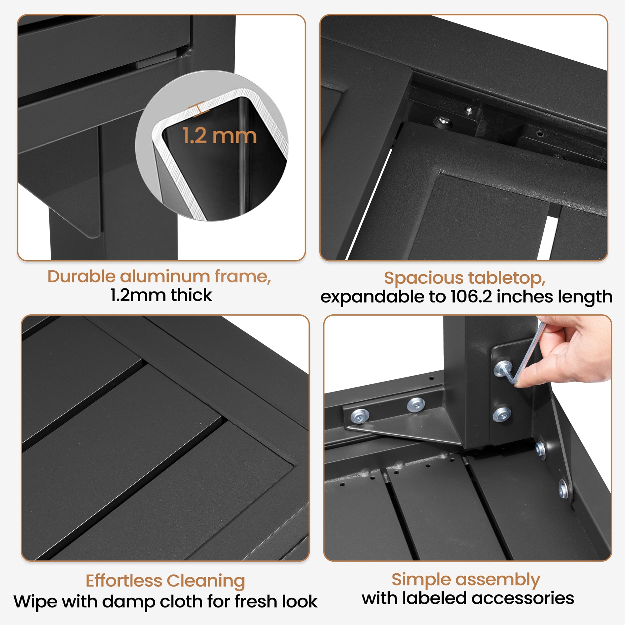 Adjustable Length: This expandable patio table easily adapts to your needs—measuring 53.1" L x 35.4" W x 29.7" H before expansion and extending up to 106.2" in length. Ideal for 4–10 people, it allows effortless adjustment for cozy dinners or larger gatherings, making it perfect for any outdoor occasion.