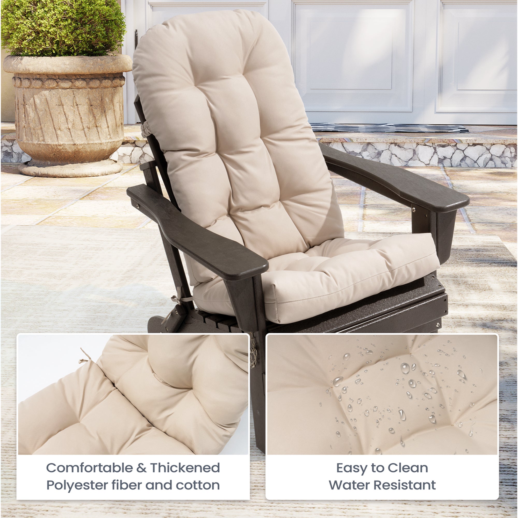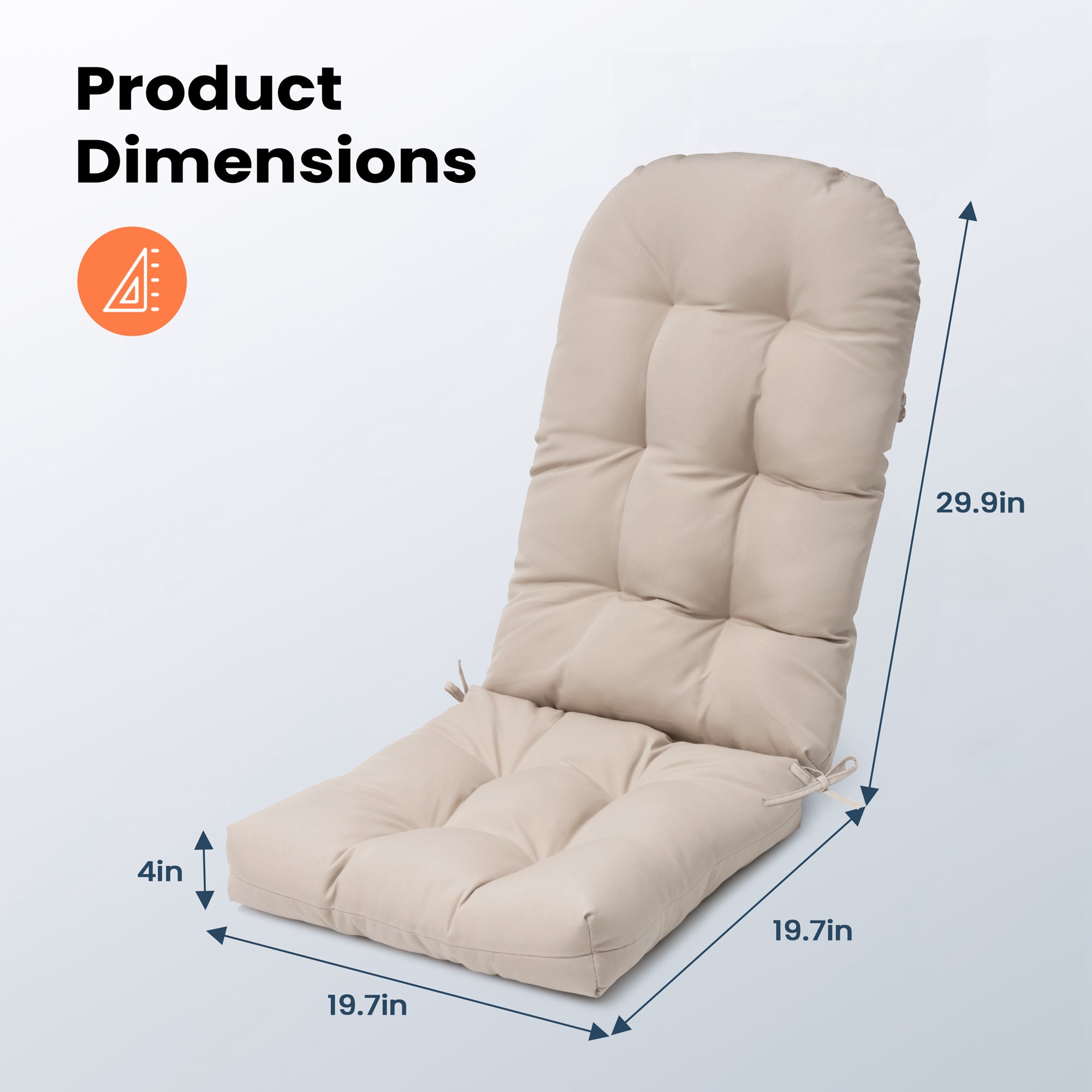 Dimension: Seat: 19.7" W x 19.7" D x 4" T; Back: 19.7" W x 29.9" H — fits most Adirondack chairs, offering full-body comfort and effortless outdoor elegance. Note: Please check the size before purchase to ensure a proper fit!