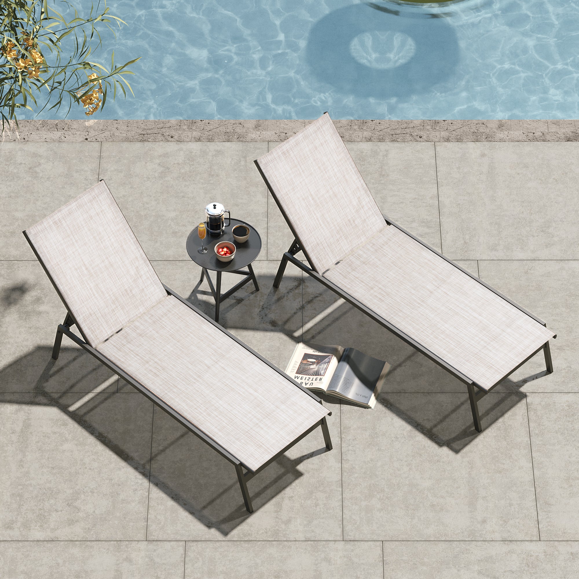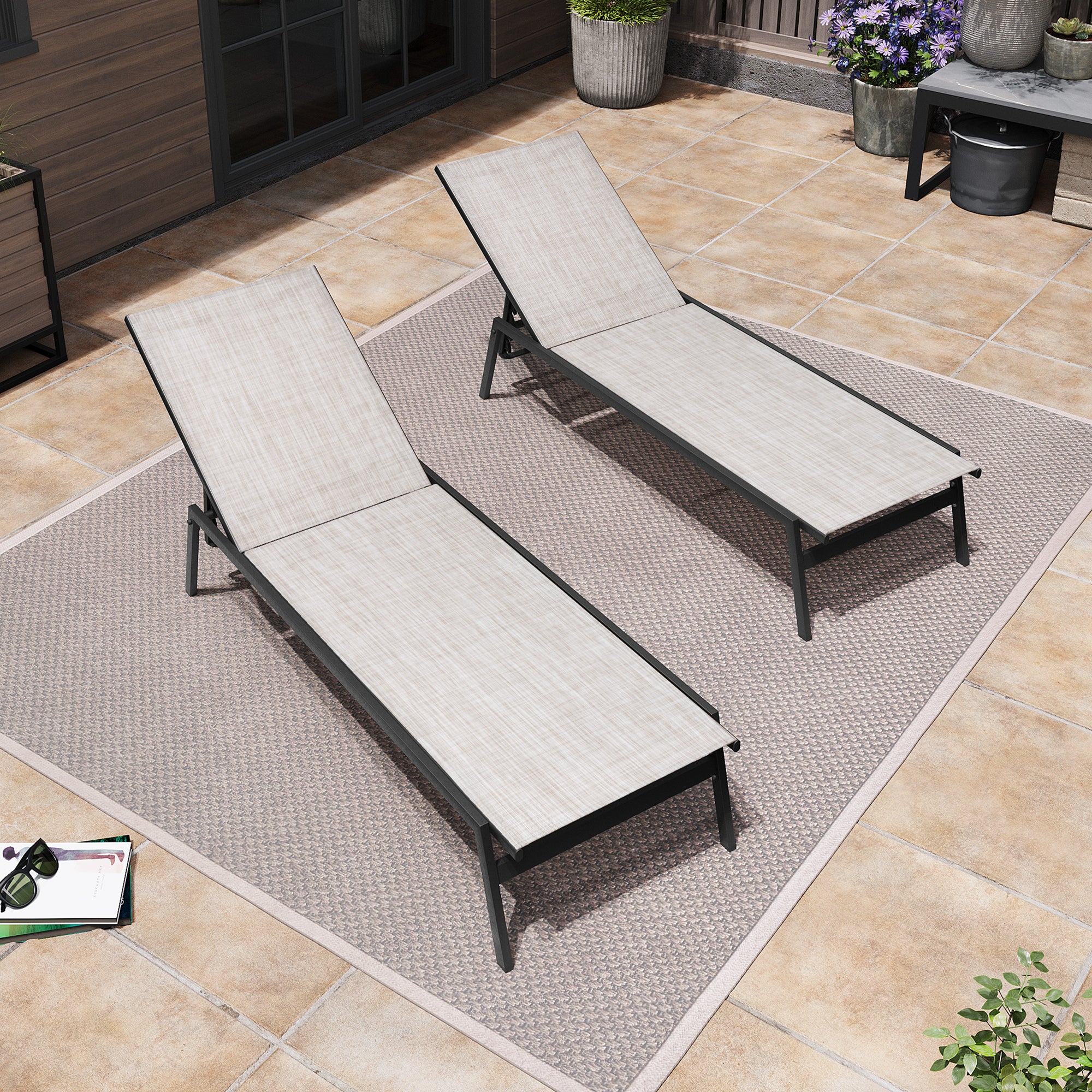 Space-Saving Stackable Design: The chaise lounges conveniently stack for easy storage and a clutter-free outdoor area. Fold and store them in your car trunk or against a wall when not in use, then unfold anytime for instant relaxation.