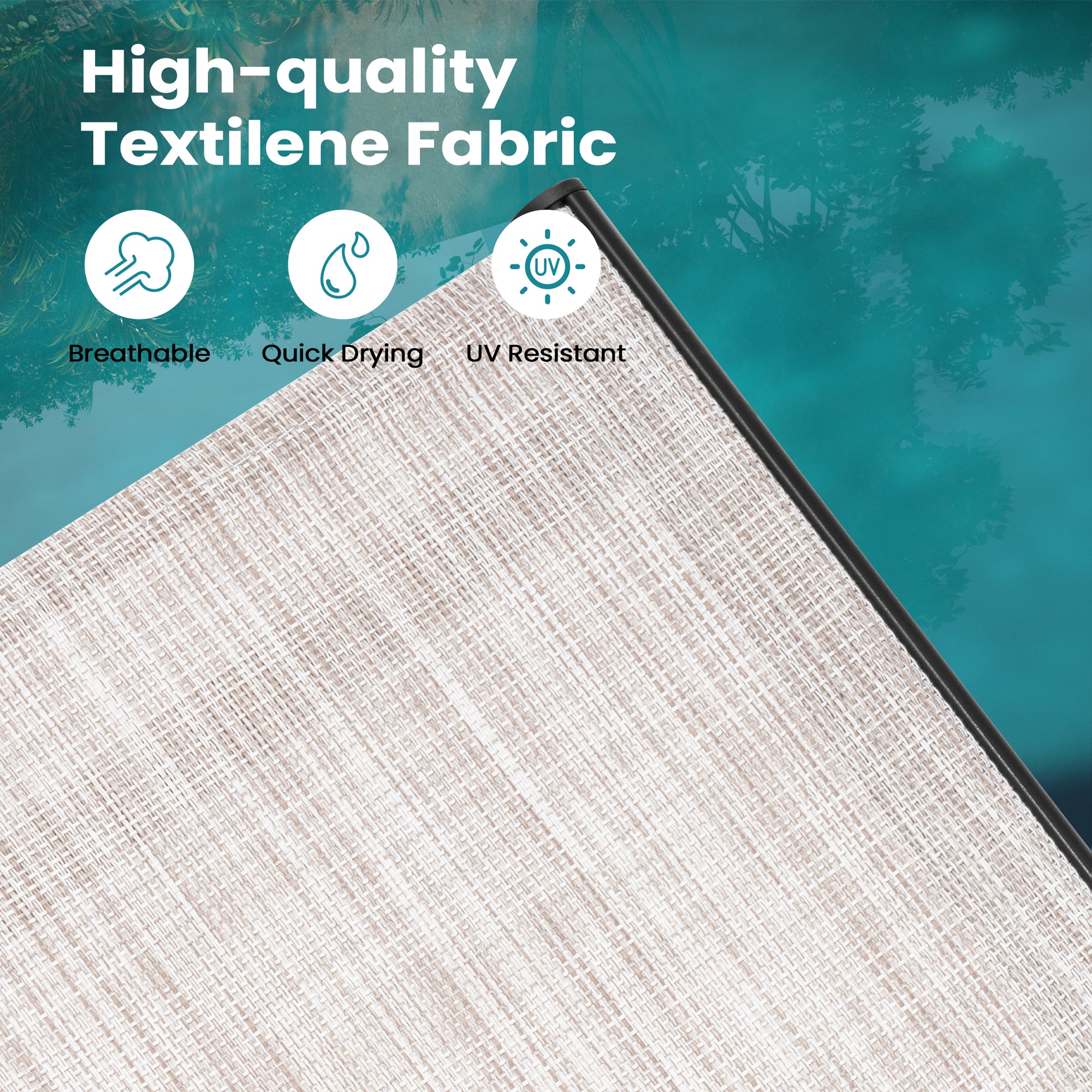 Premium Textilene Fabric: Made from UV-resistant, breathable Textilene fabric that's waterproof, oil-repellent, quick-drying, and easy to clean—offering lasting comfort and durability in any weather. Note: Wipe the seat with a damp cloth after use to prevent sweat stains.