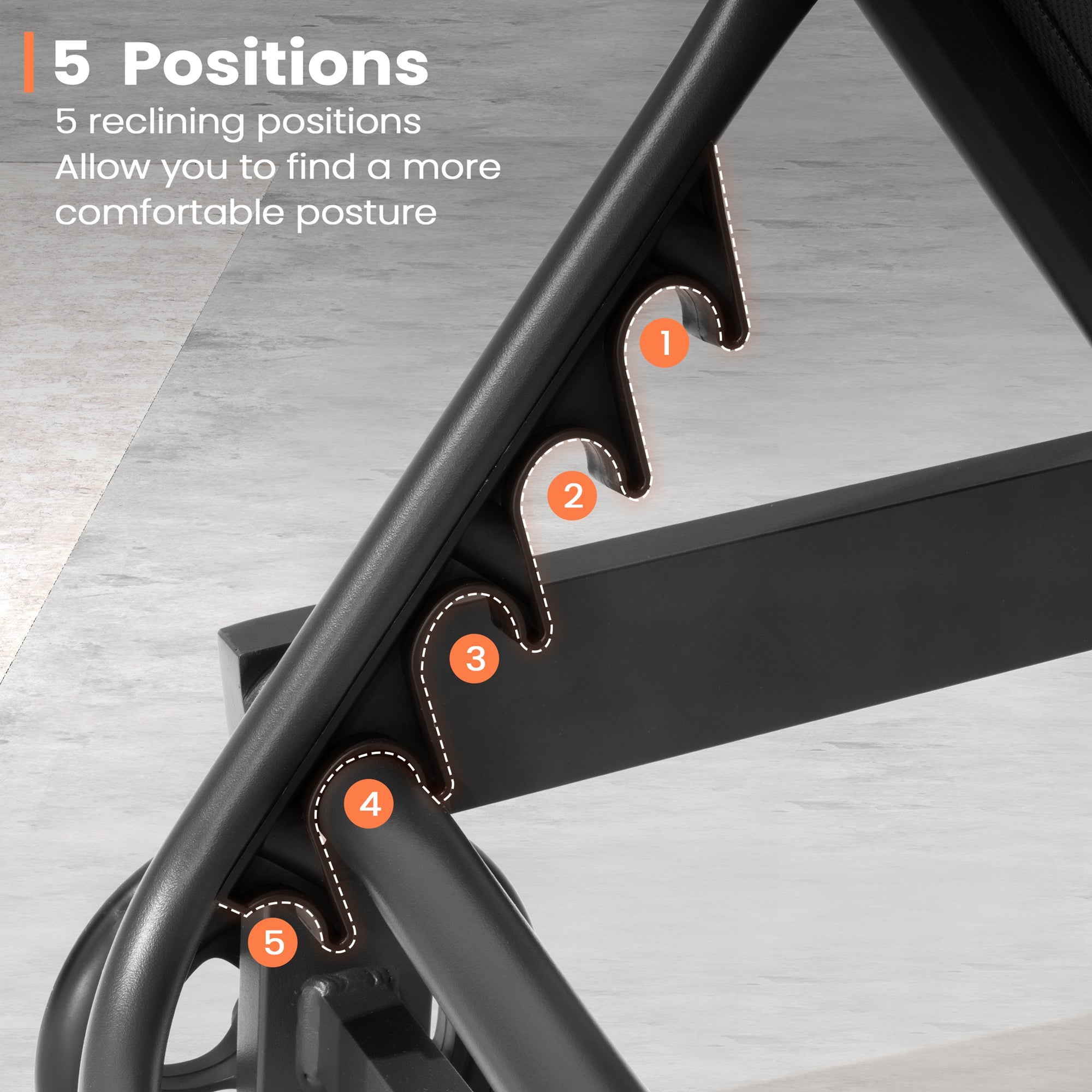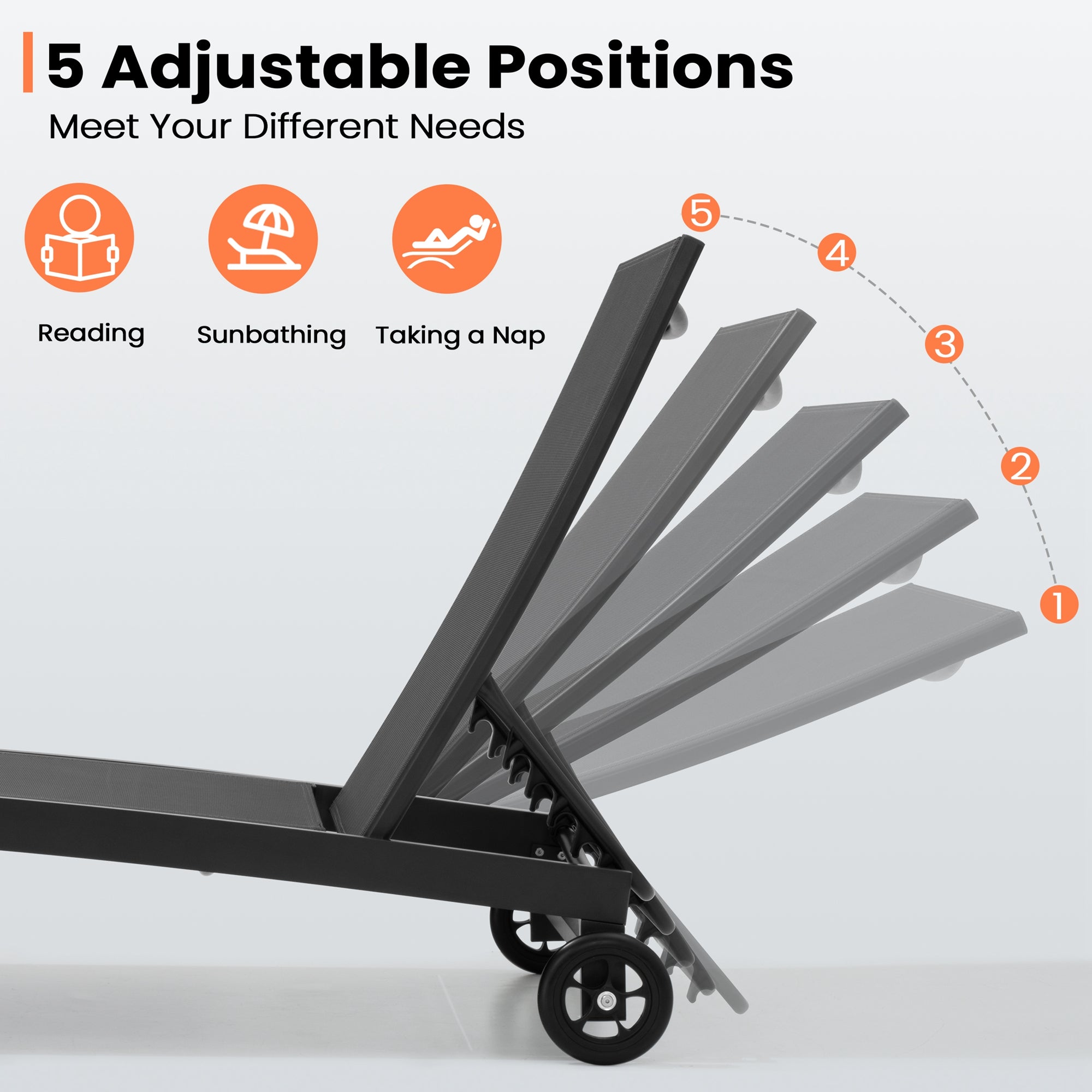 Adjustable Backrest: Featuring 5 reclining positions, this lounge chair lets you easily adjust the backrest to your ideal angle—perfect for reading, relaxing, or taking a refreshing nap outdoors.