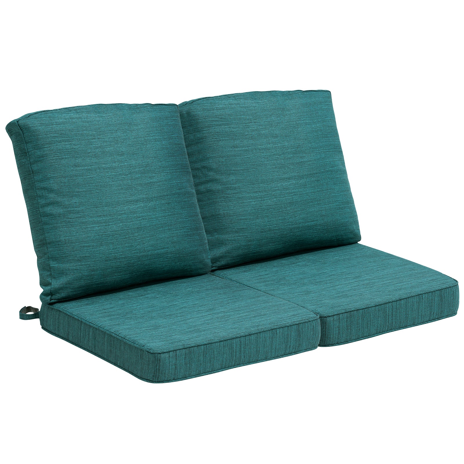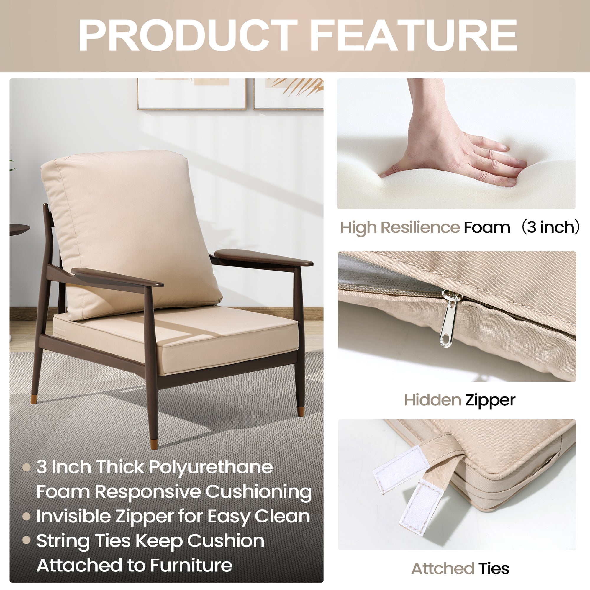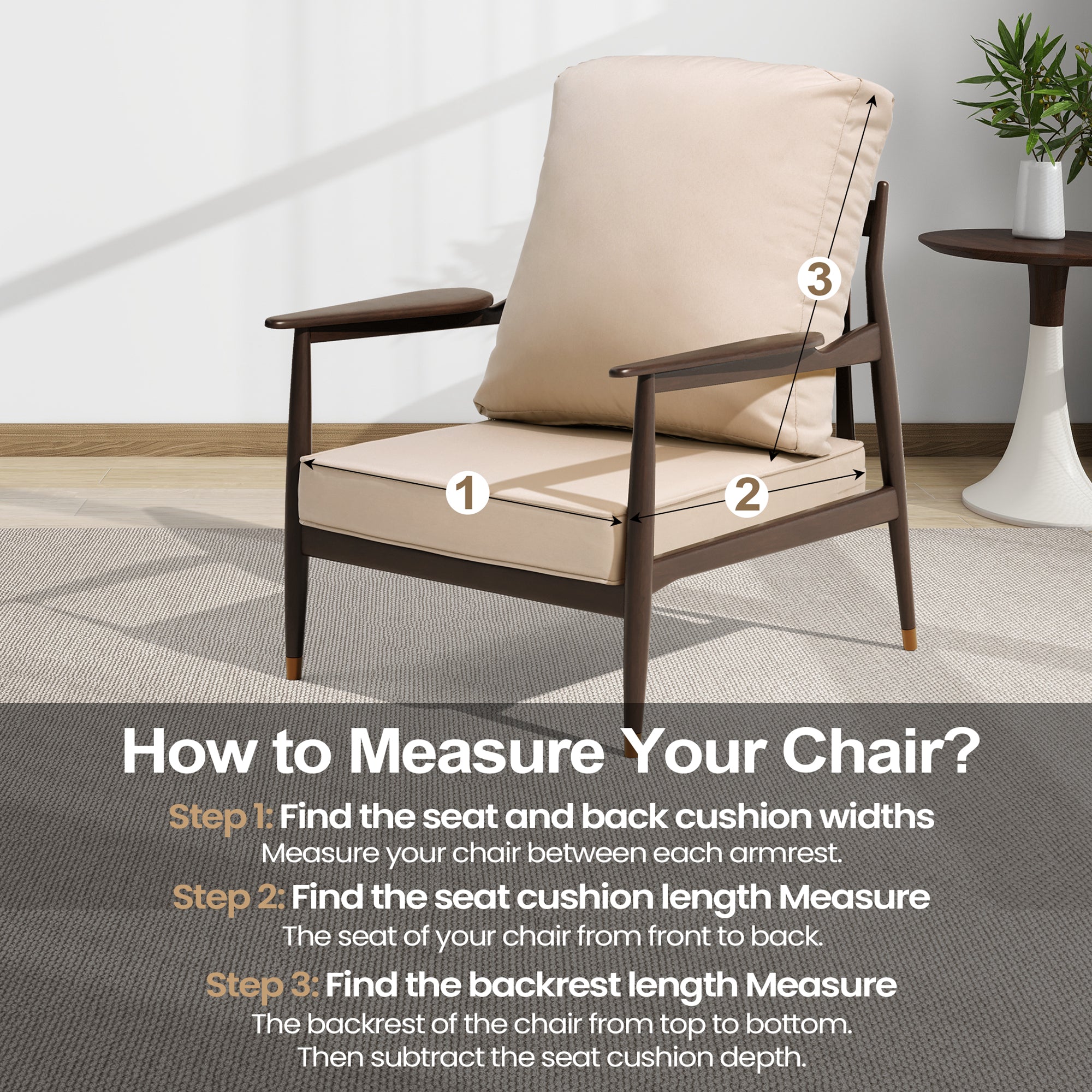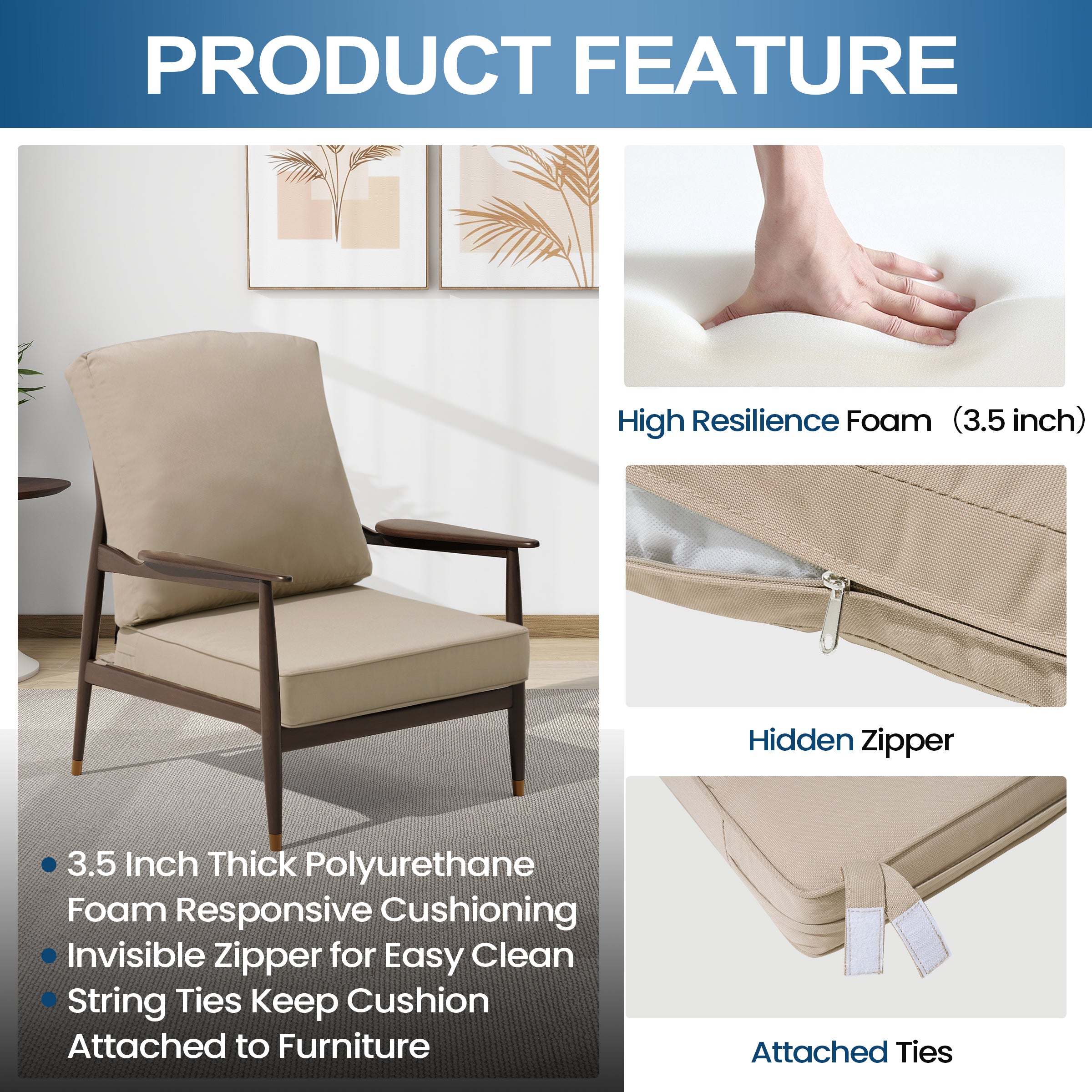 Two-Piece Deep Seat Cushion Set: Includes a thick seat cushion and a matching back pillow, designed to fit most deep-seat outdoor chairs. Seat cushion measures 22" L x 21" W x 3.5" H; back pillow measures 21" L x 22" W. Please measure before purchase.