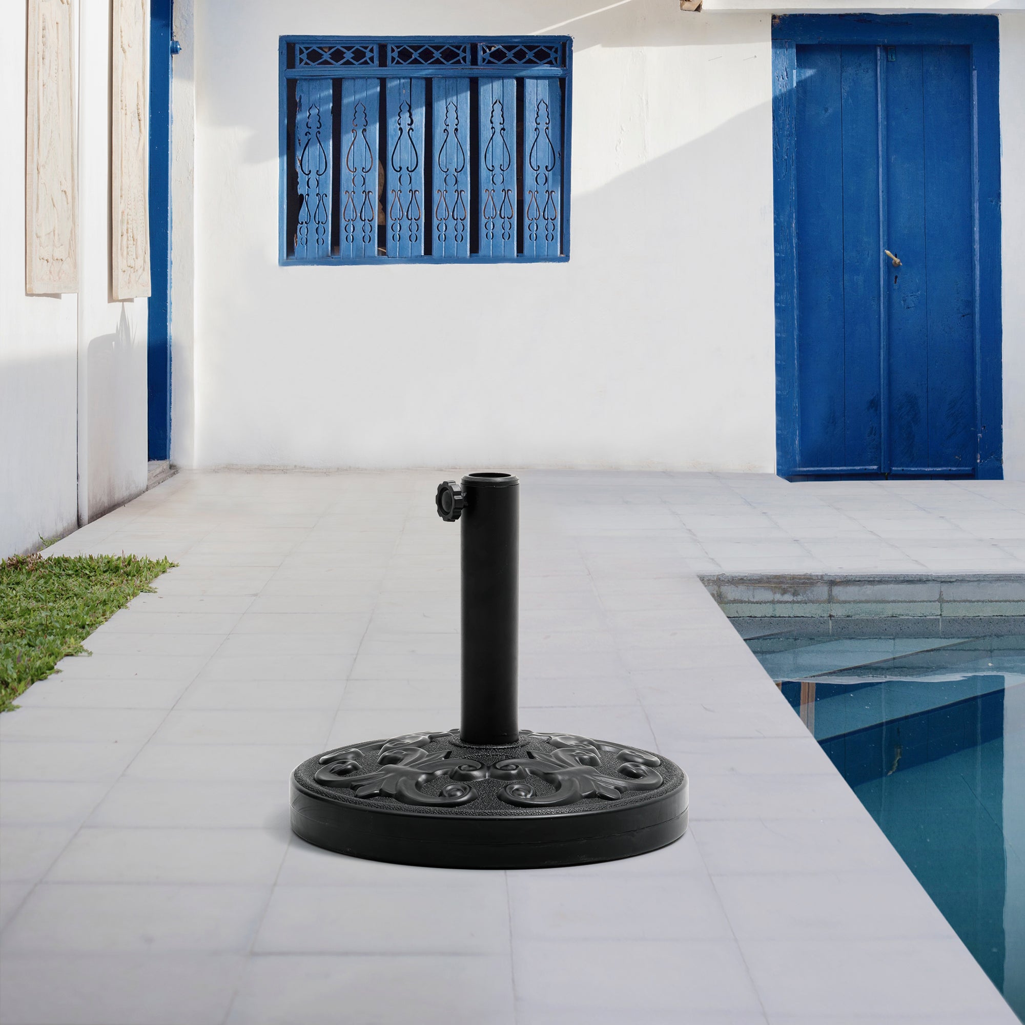 Timeless Design: Featuring a sleek black finish and an elegant floral pattern, this round base adds a touch of sophistication to any outdoor area.