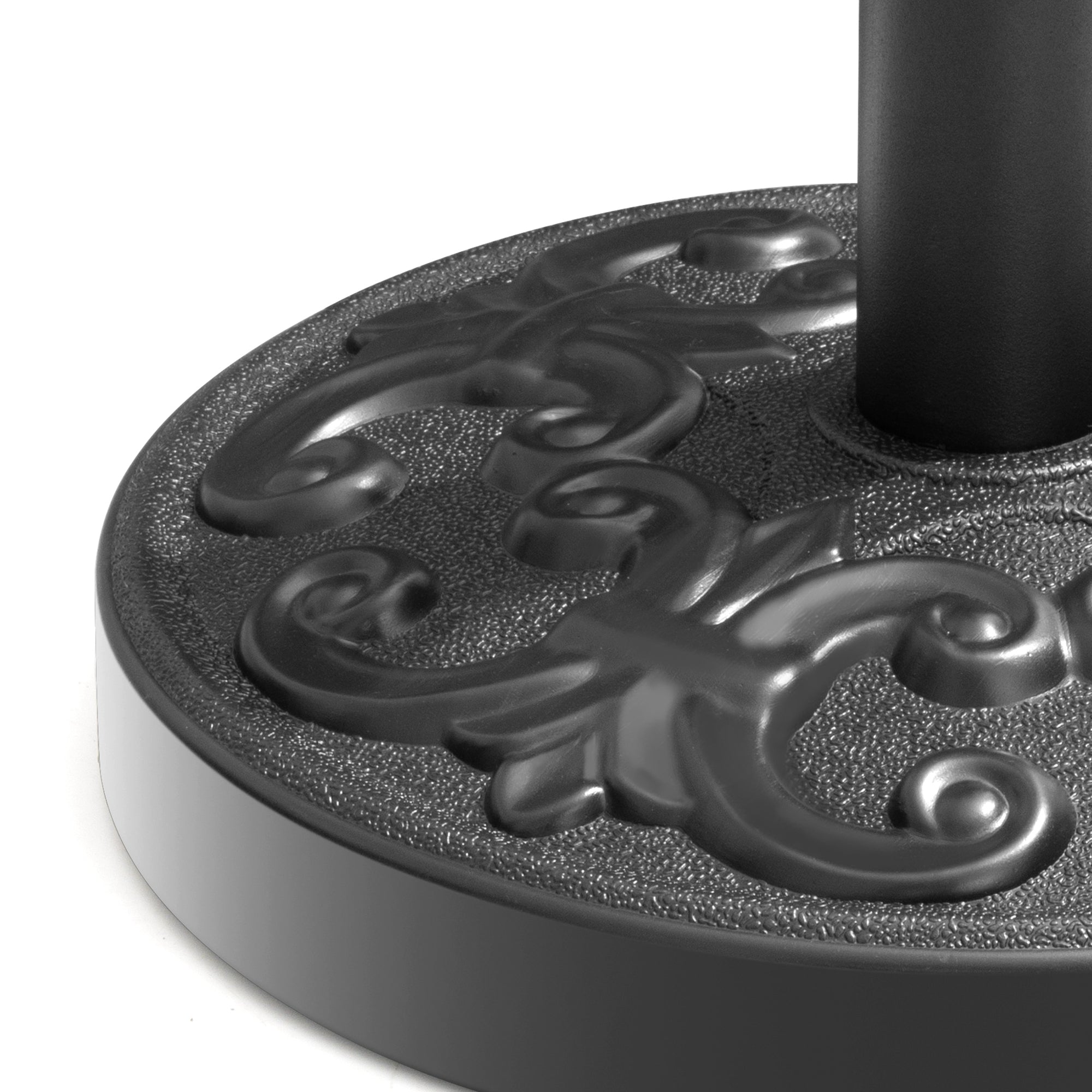 Timeless Design: Featuring a sleek black finish and an elegant floral pattern, this round base adds a touch of sophistication to any outdoor area.