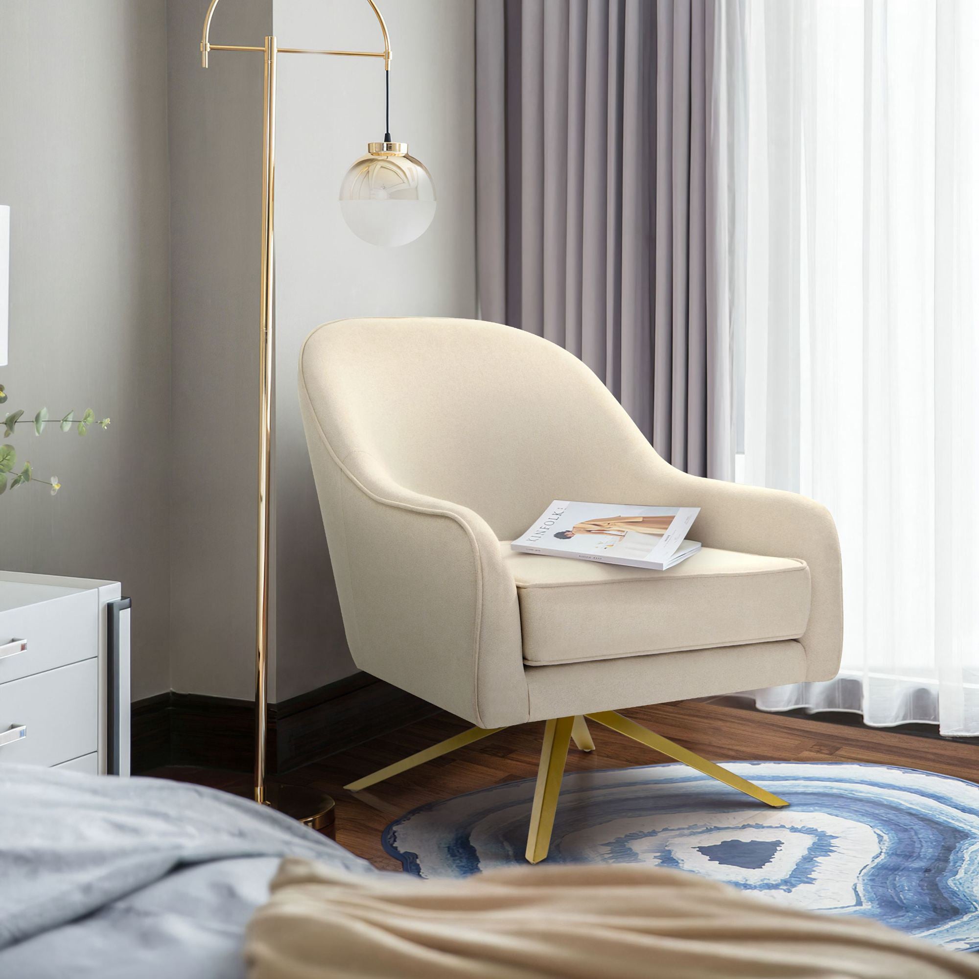 Durable & Rust-Resistant Frame: Built with a powder-coated stainless steel frame, this swivel accent chair offers reliable durability and long-term rust resistance. The sturdy cross base enhances overall stability and support, with a weight capacity of up to 275 lbs.